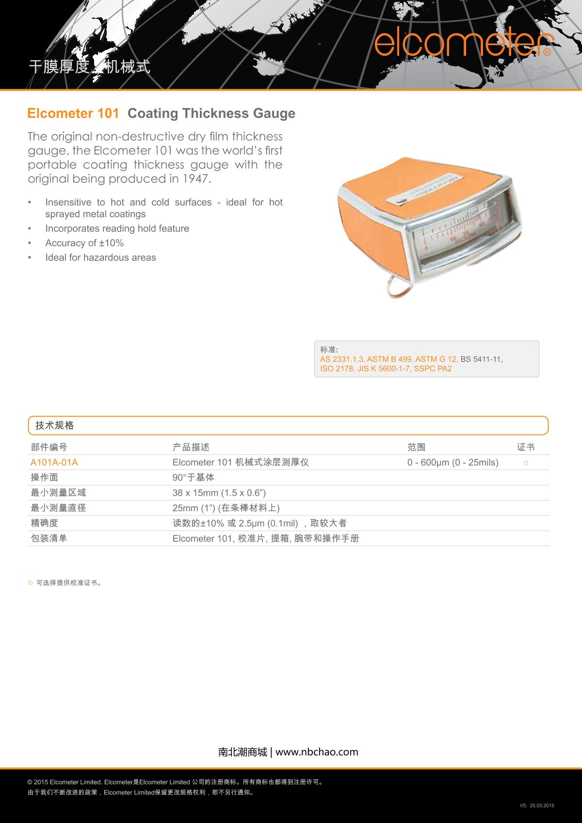Elcometer A101A-01A Coating Thickness Gauge brochure