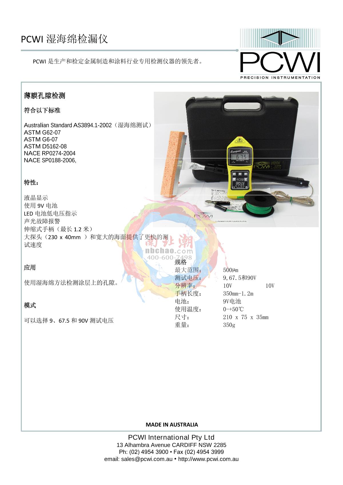 PCWI DC15 Industry Portable pinholing DC porosity Detector brochure
