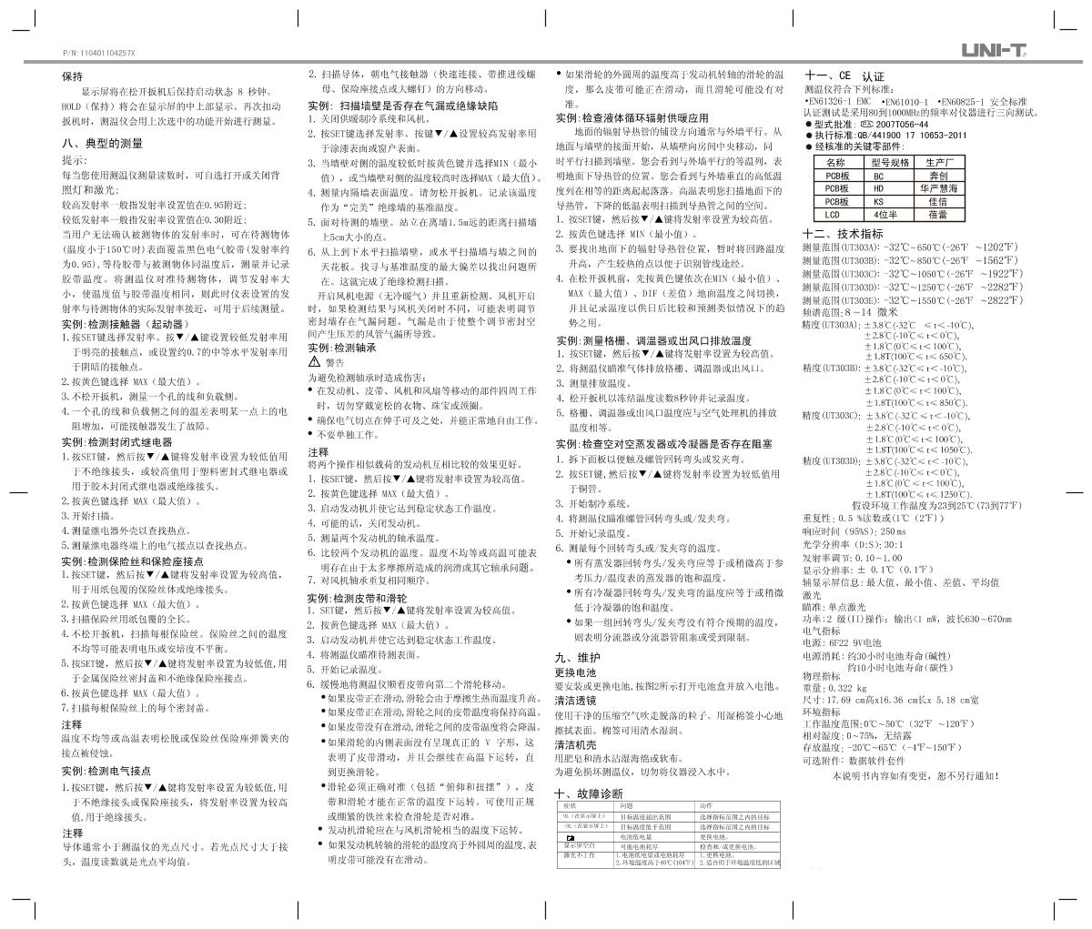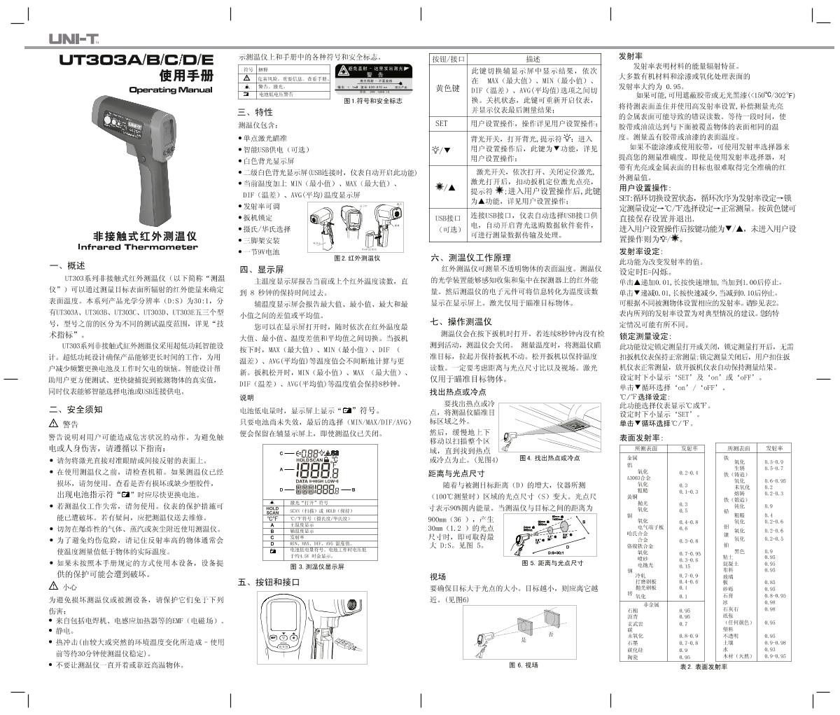 UNI-T UT303A Infrared Thermometer Manual,OI