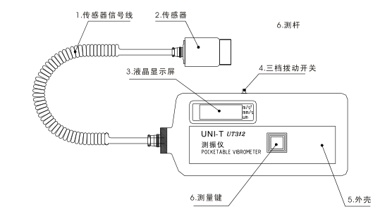 The UT310 series portable vibrometer is an integrated pocket-sized and hand-held vibrometer composed of piezoelectric accelerometer and digital display circuit. It is mainly used for the measurement of vibration displacement, velocity (intensity) and acceleration of mechanical equipment. UT310 series products can be divided into one-piece, split-type and multi-functional intelligent type according to the connection mode between the vibration sensor and the host for you to choose. It fully meets the routine measurement of mechanical equipment, especially the vibration measurement in rotating and reciprocating machinery. It is widely used in field equipment operation and maintenance personnel to monitor the status of equipment, find problems in time, and ensure the normal and reliable operation of equipment.