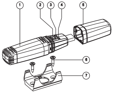 4. "ALM" red and yellow two-color indicator light, yellow light indicates full record, red light indicates temperature and humidity alarm status