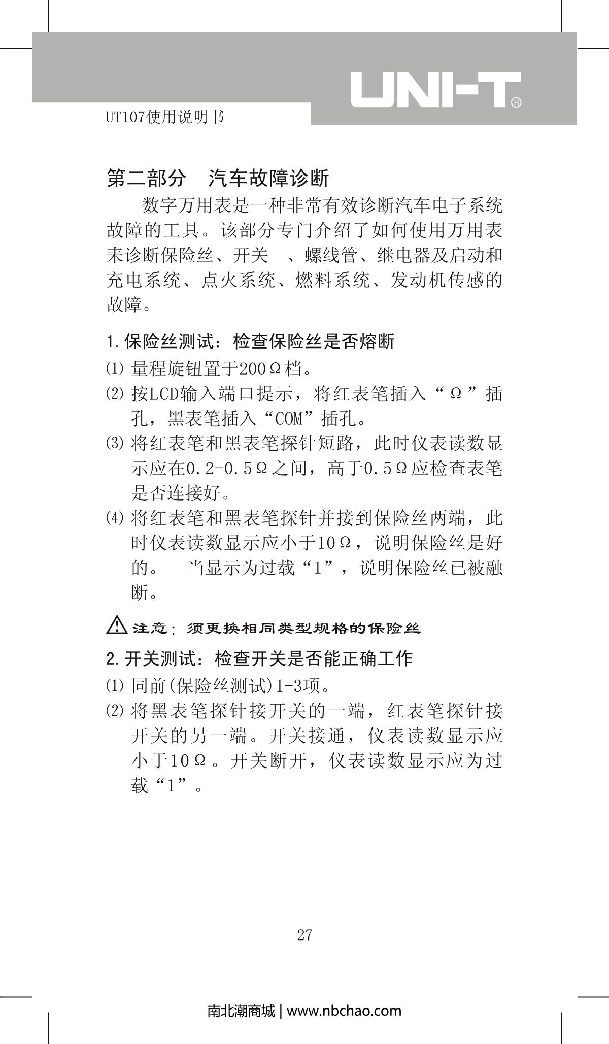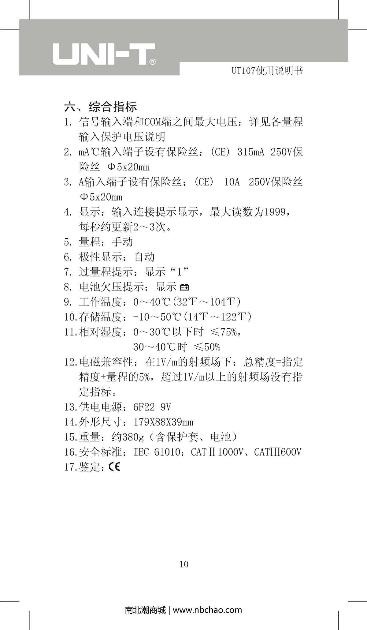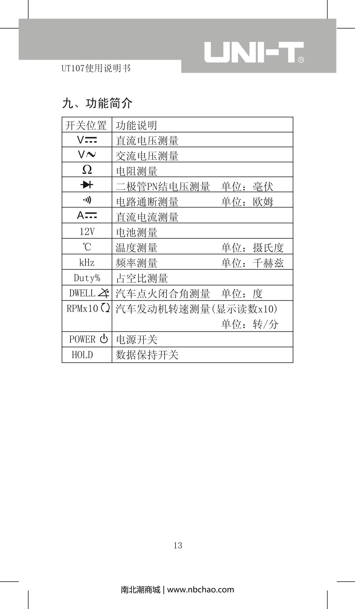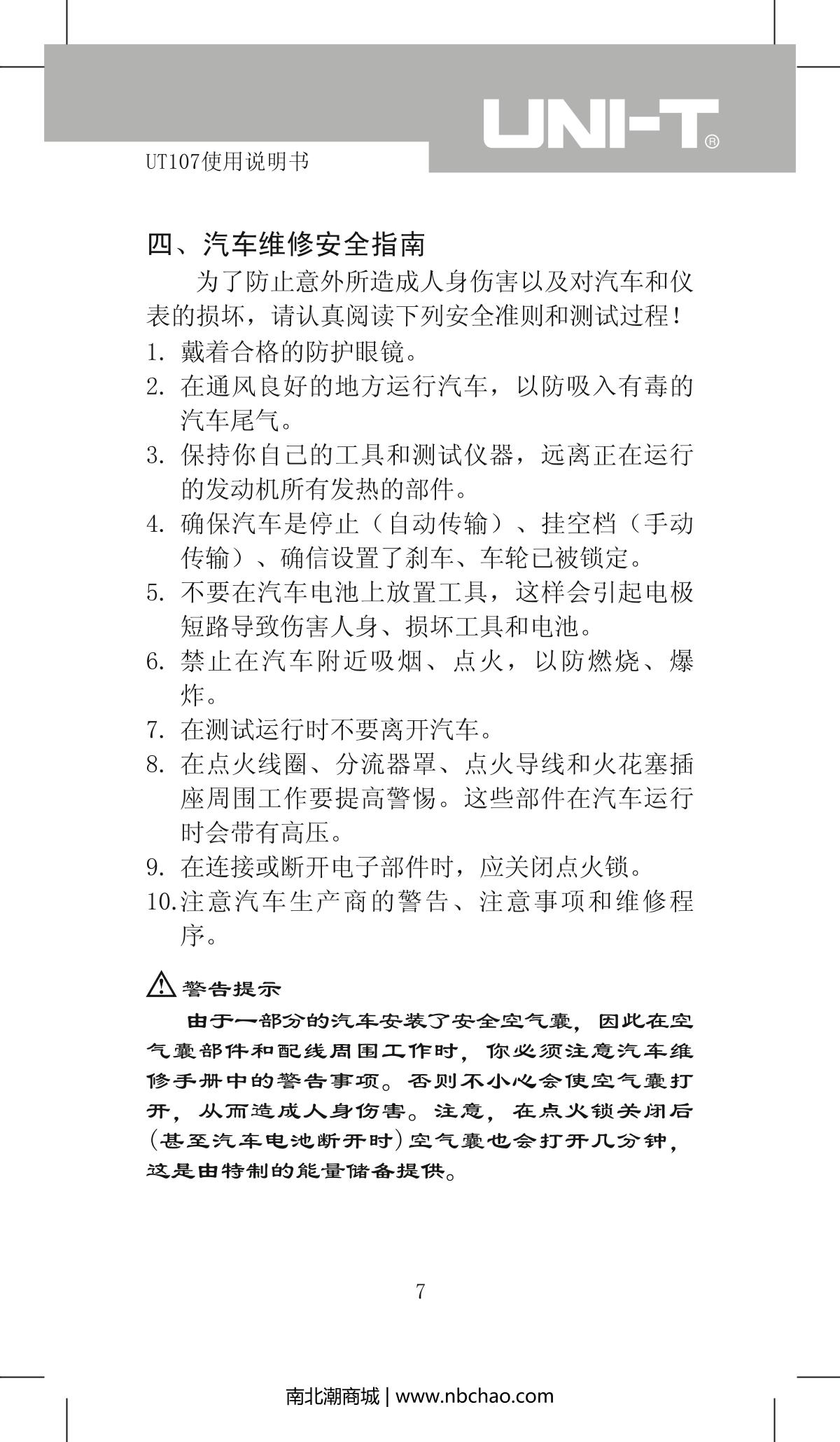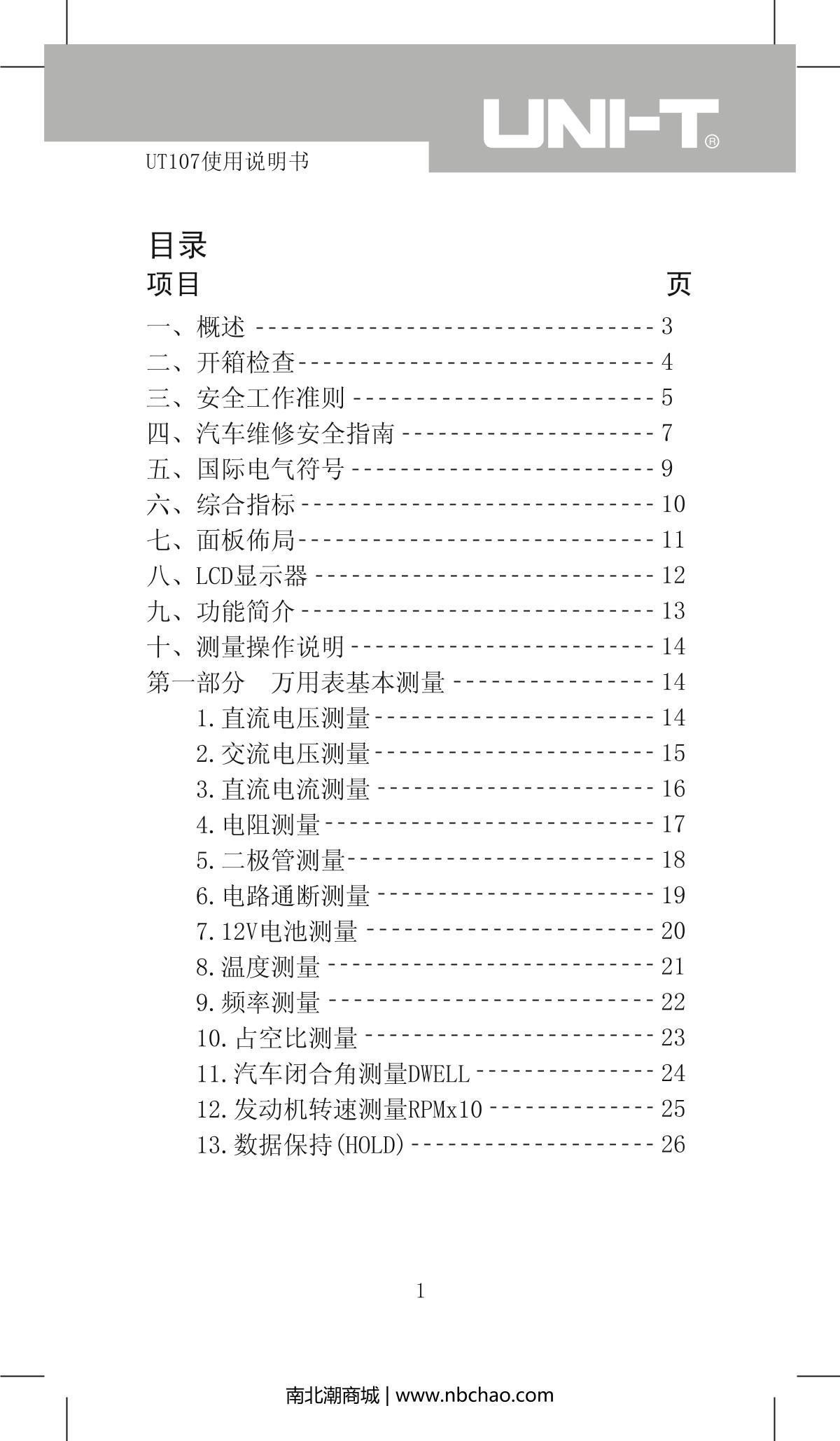 UNI-T UT107 Handheld car multi-purpose meter brochure
