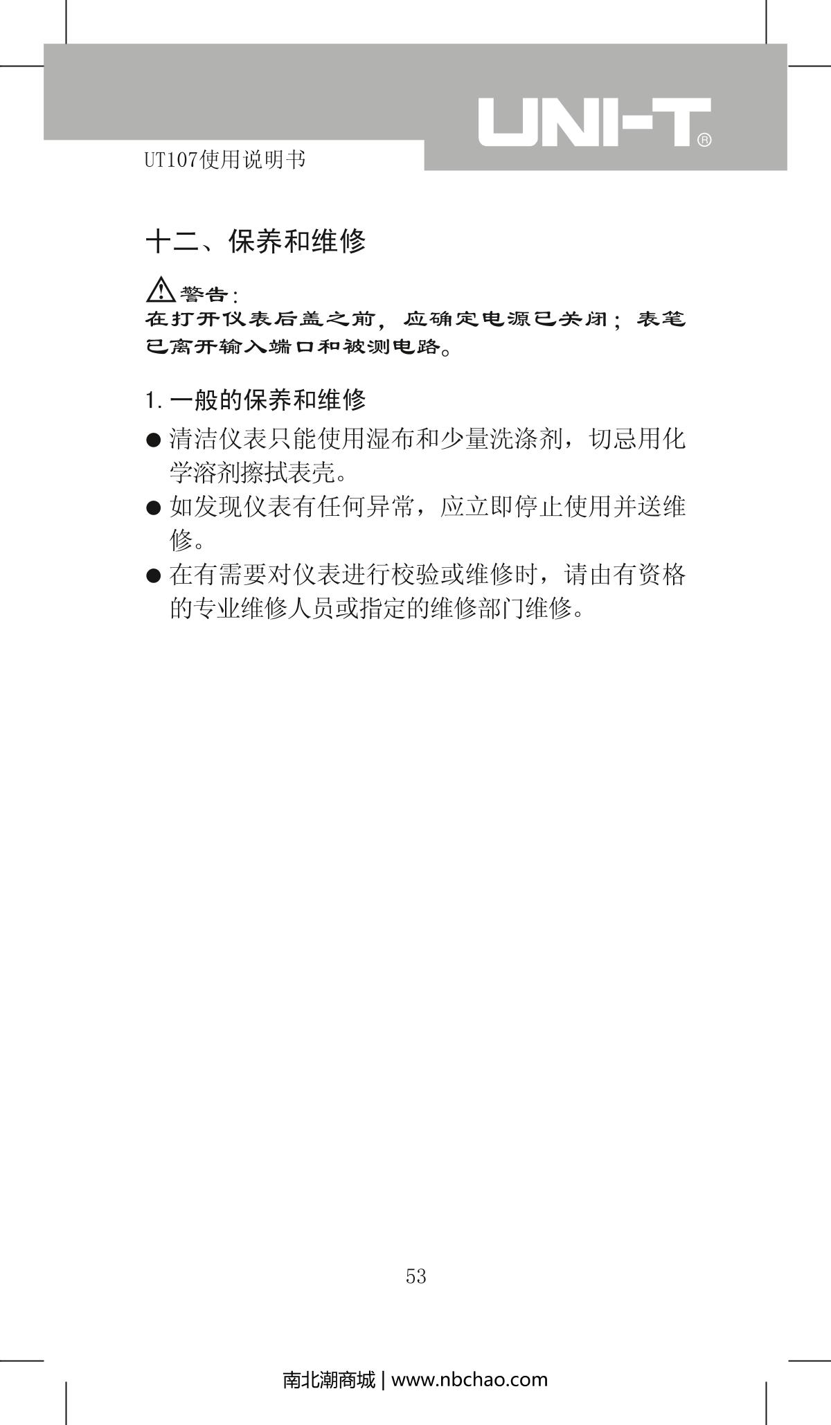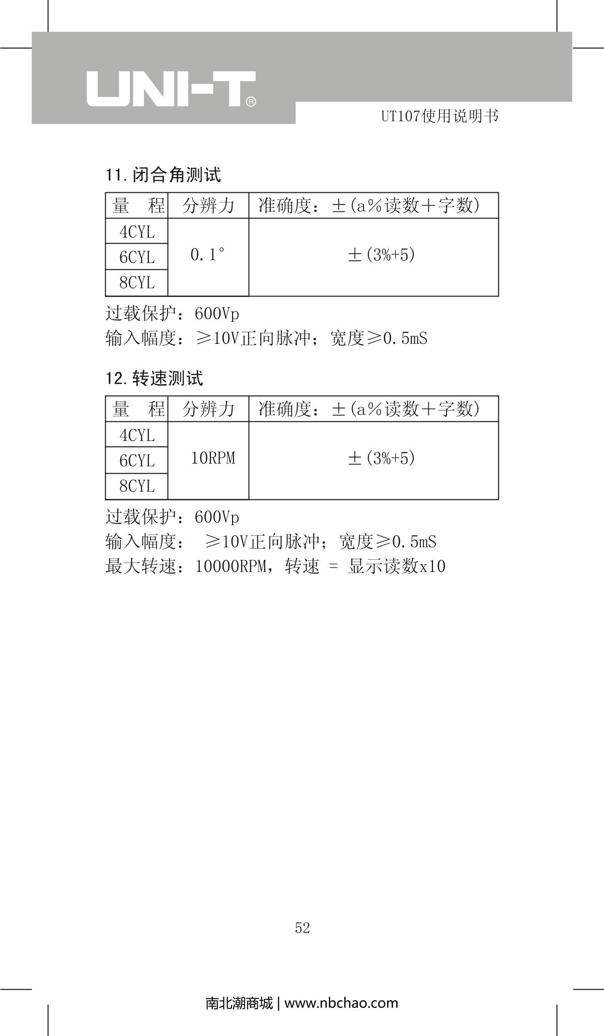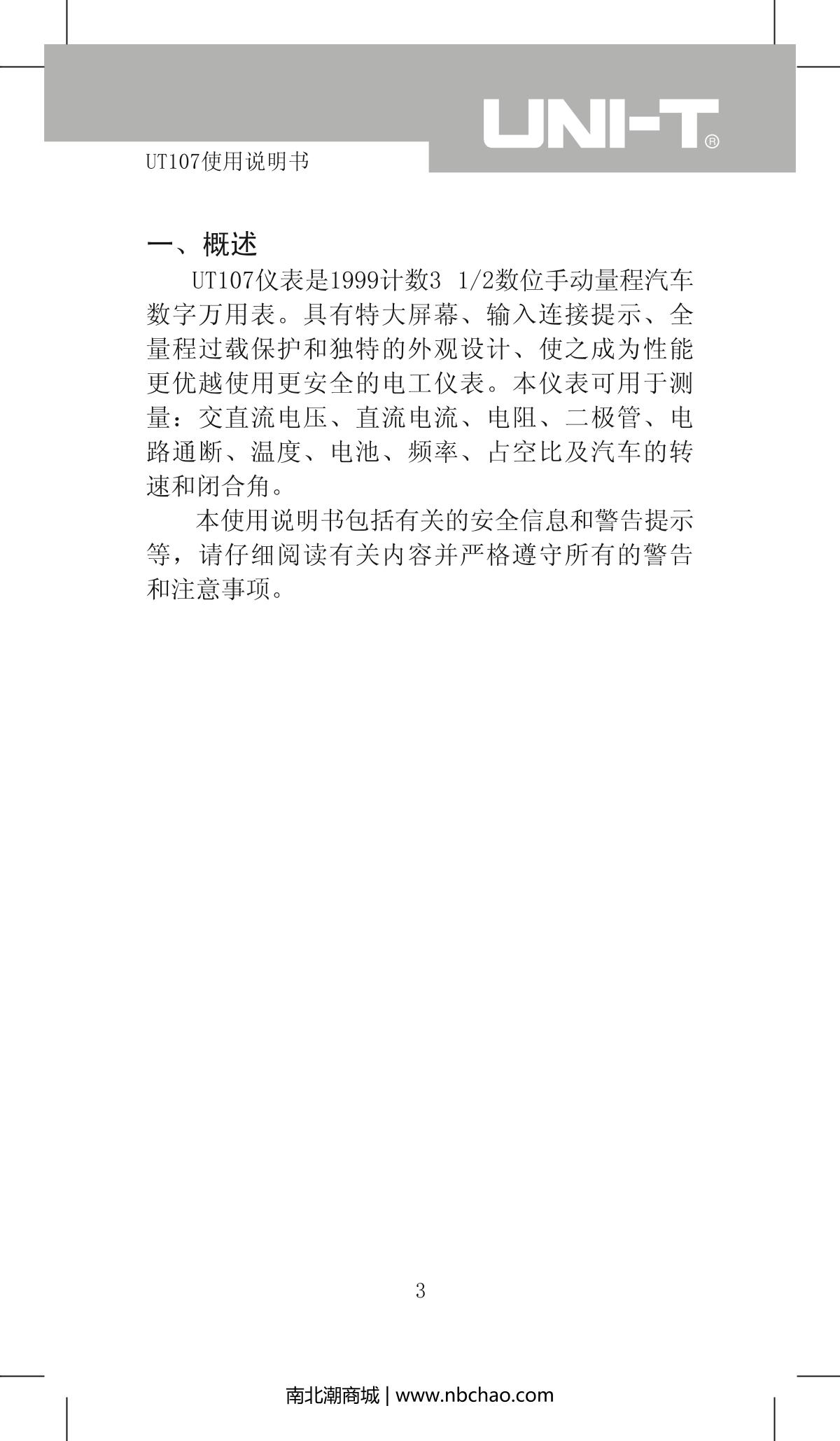 - 3UNI-T UT136C Handheld Automatic Range Digital Multimeter brochure
