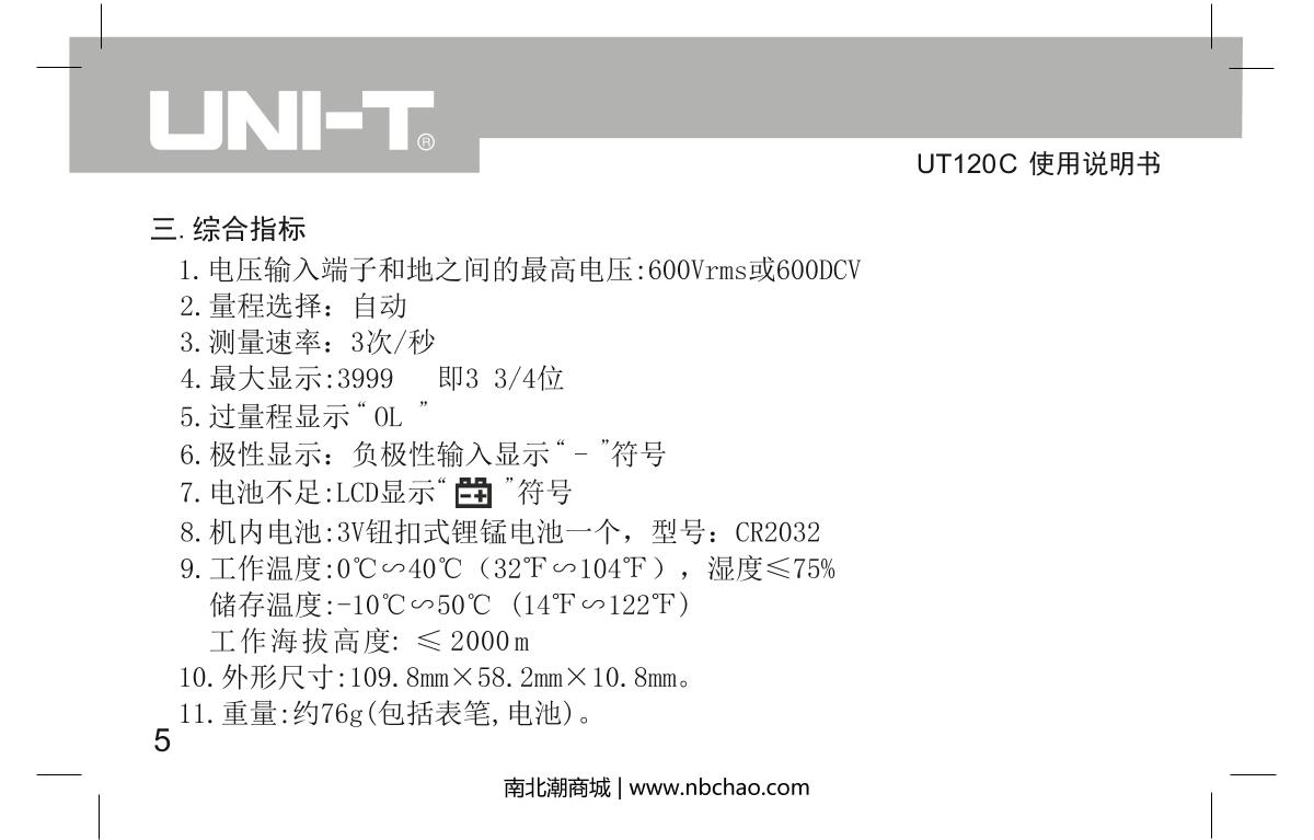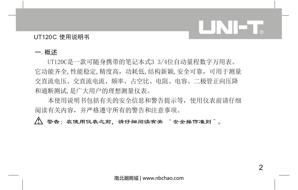 - 1UNI-T UT120C Notebook Digital Multimeter brochure
