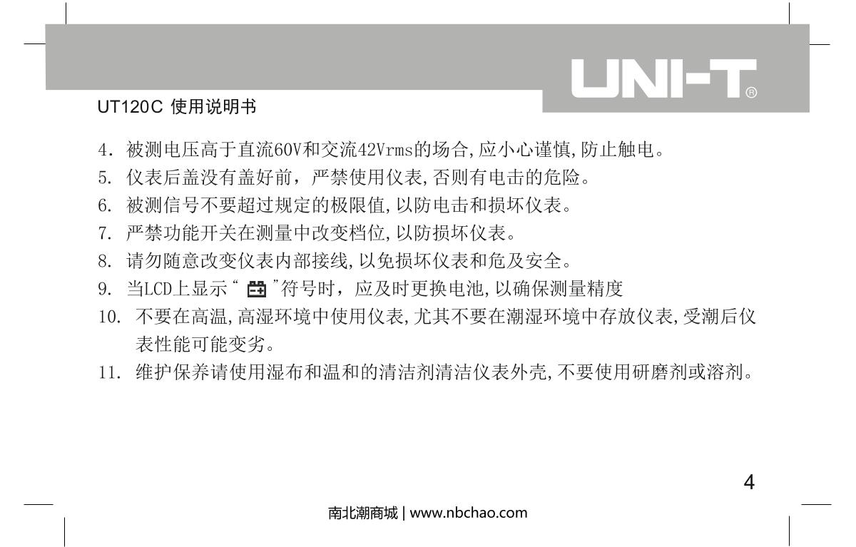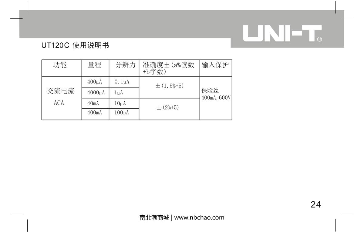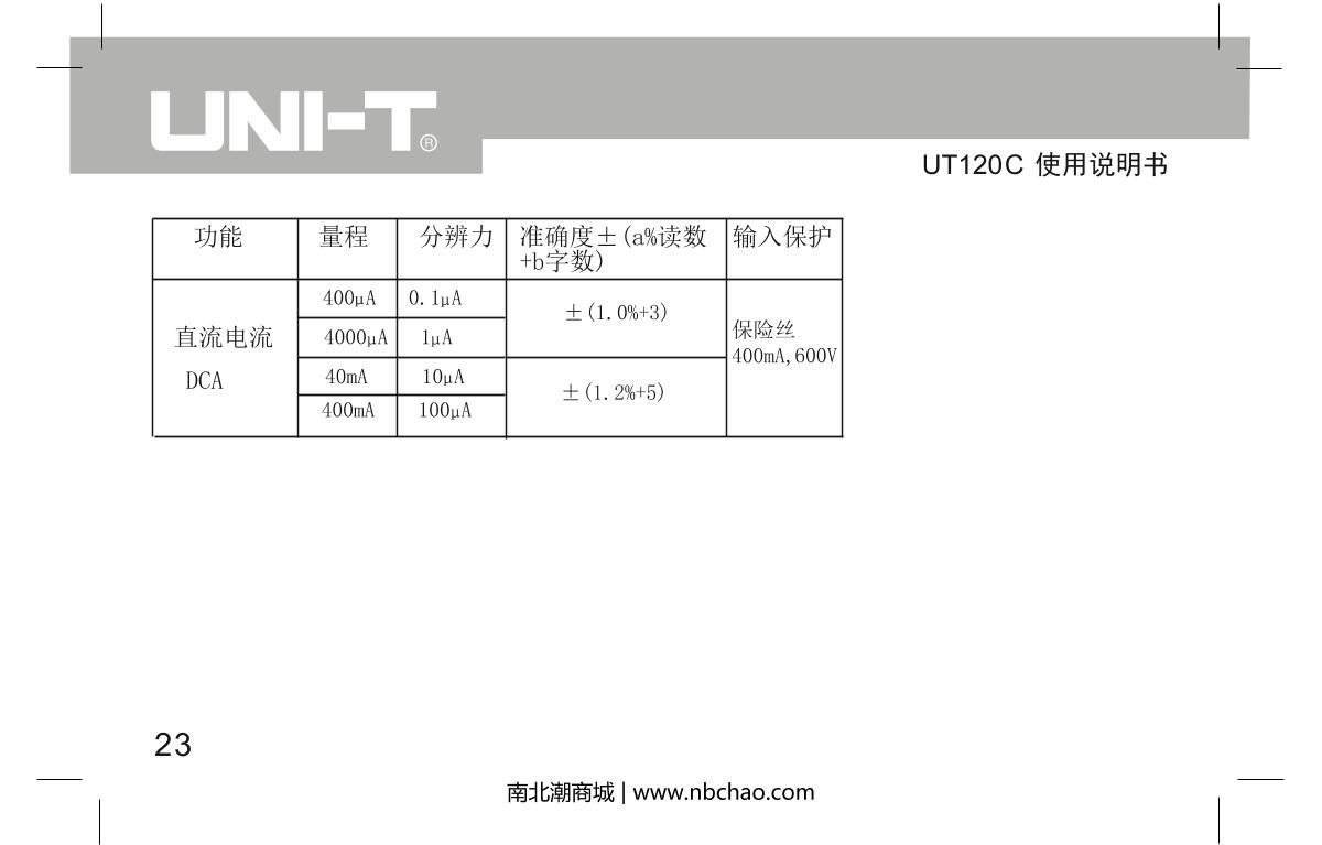 UNI-T UT120C Notebook Digital Multimeter brochure