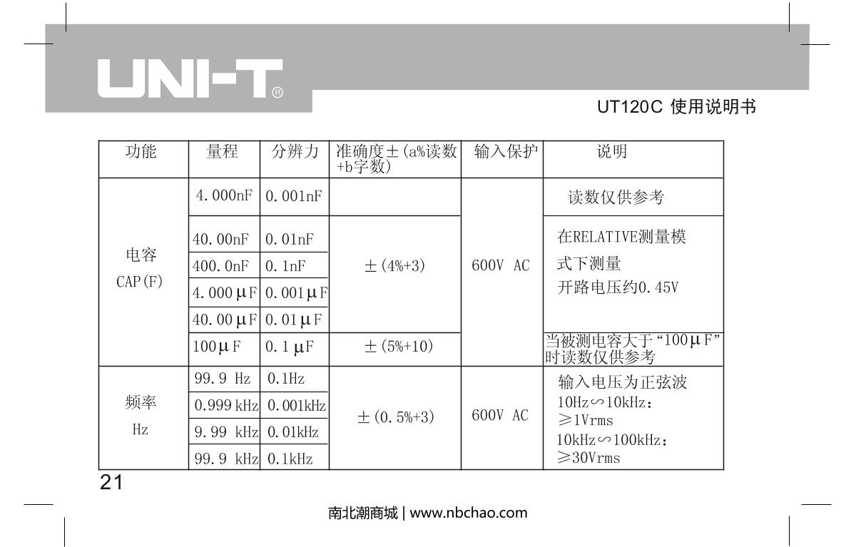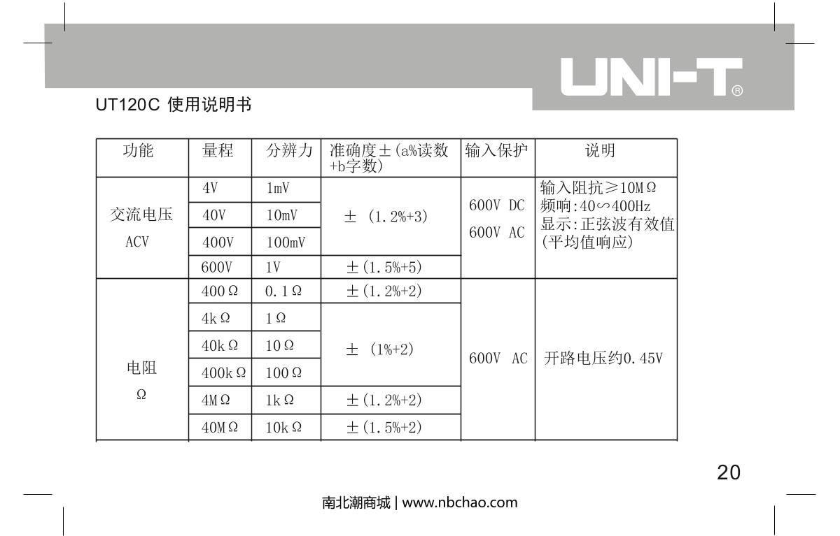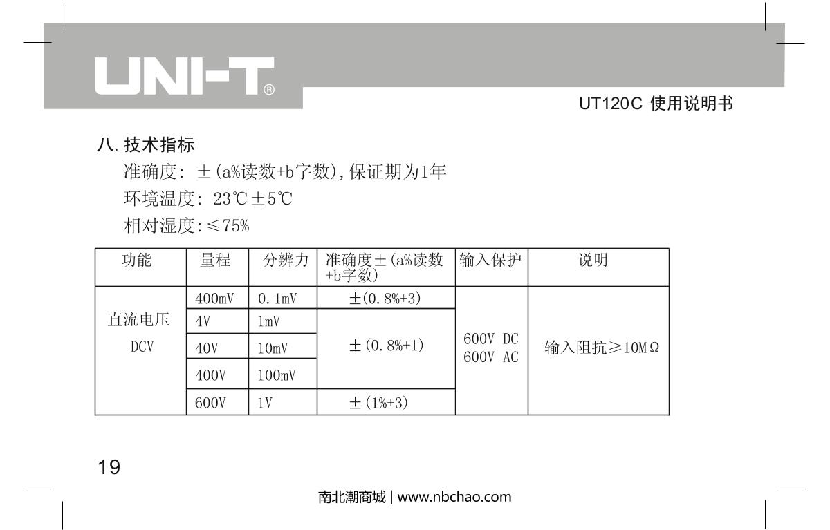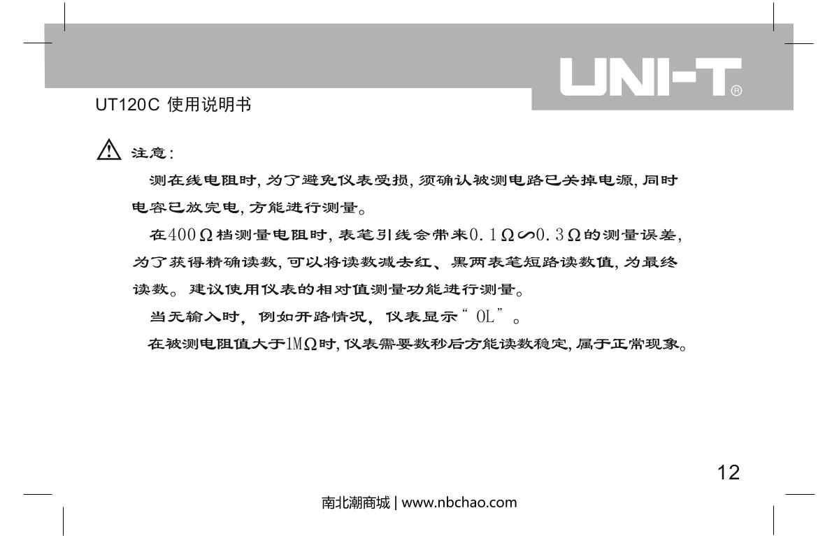 UNI-T UT120C Notebook Digital Multimeter brochure