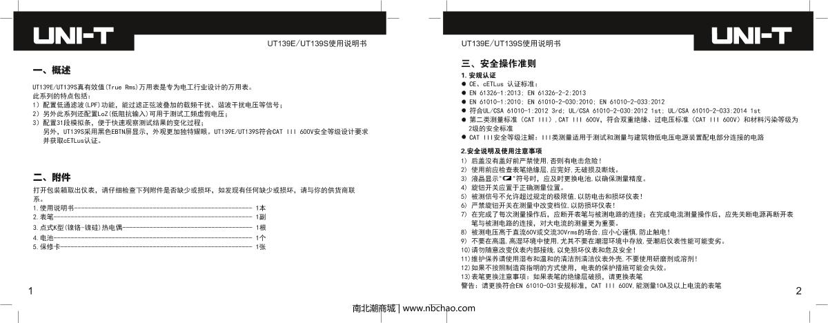 - 5UNI-T UT139A True RMS, Multimeter brochure