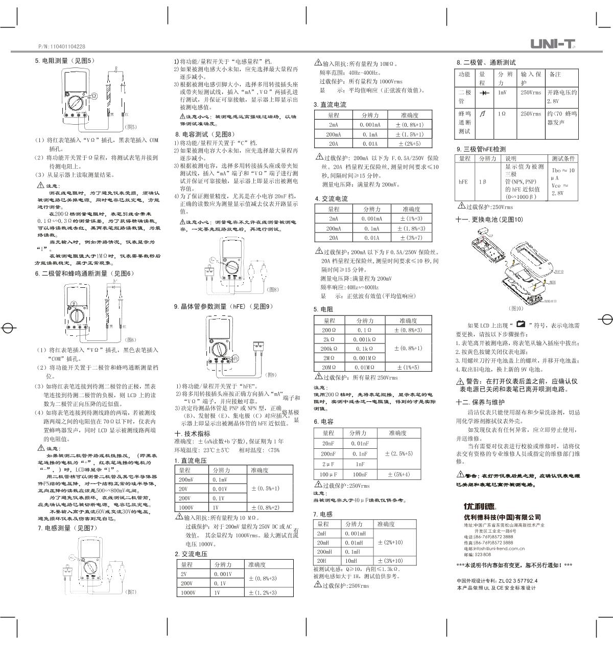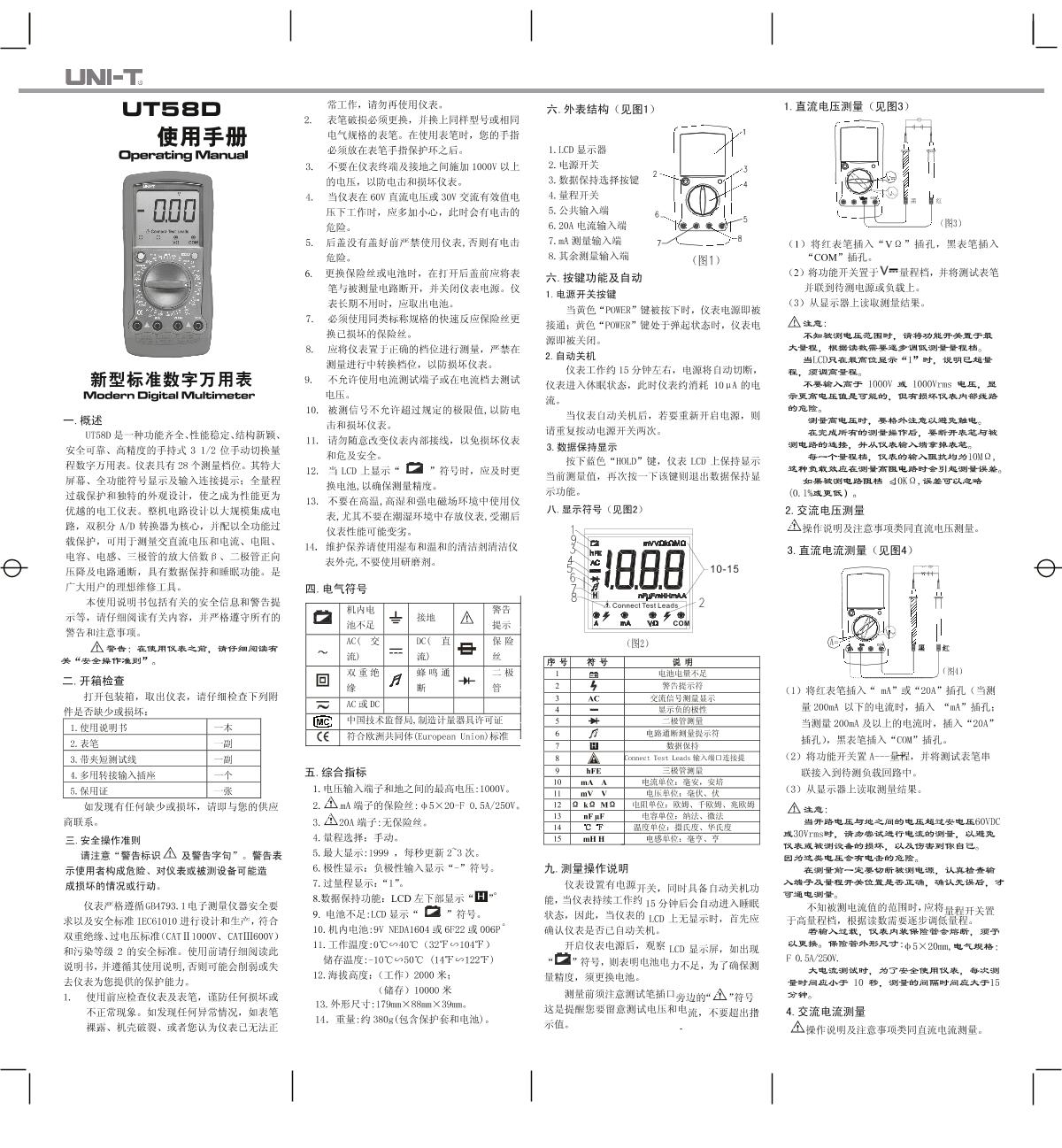 UNI-T UT58D Universal Digital Multimeter Manual,OI