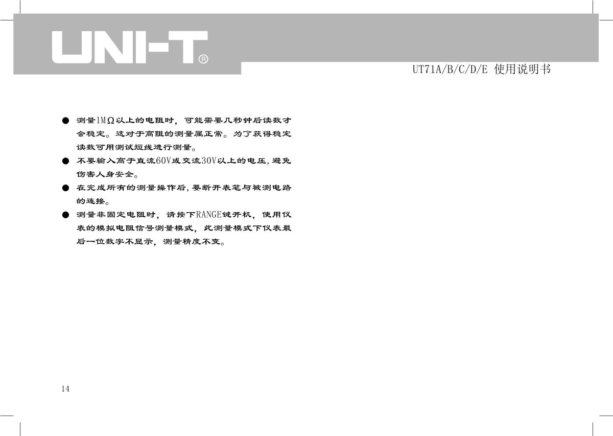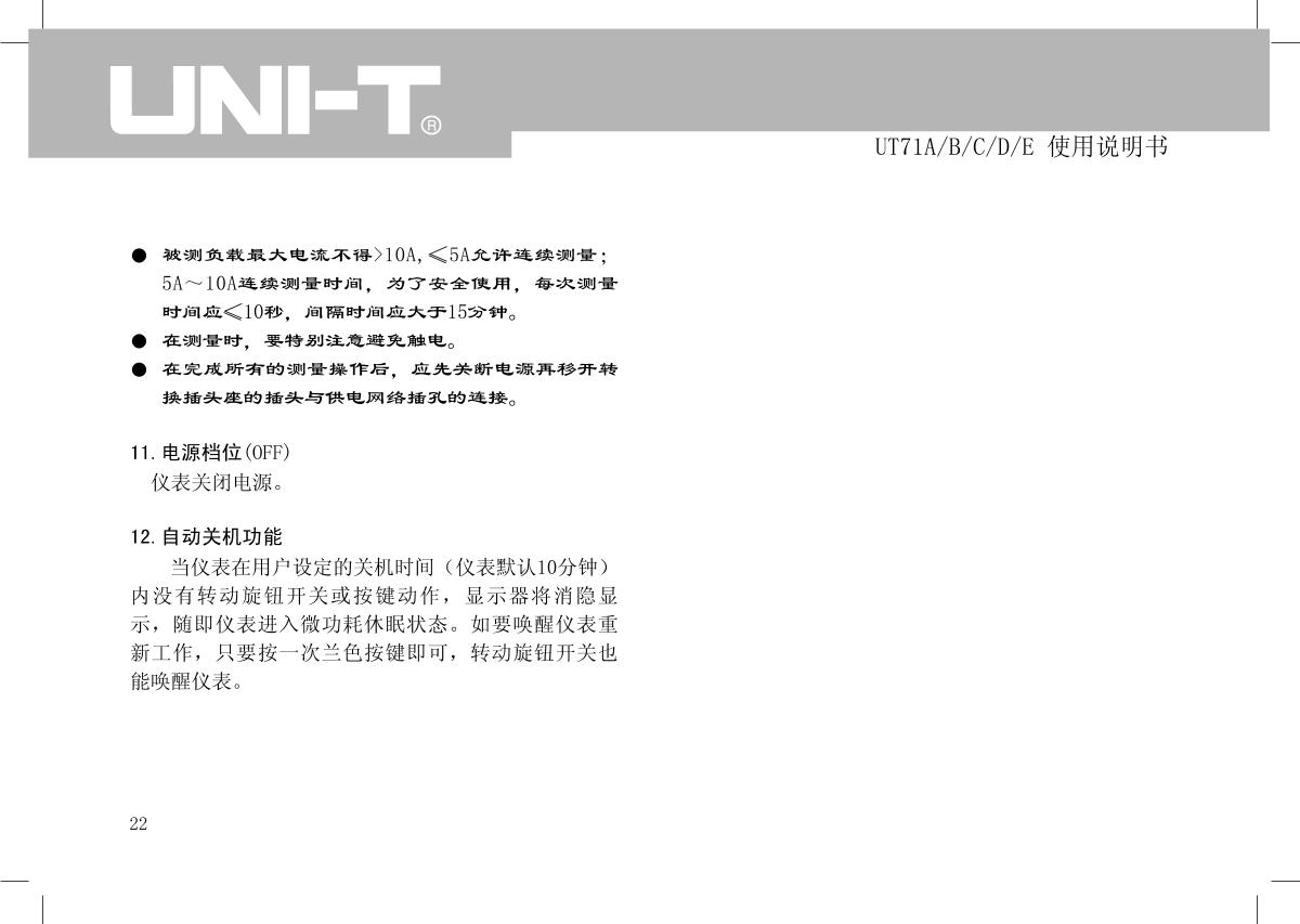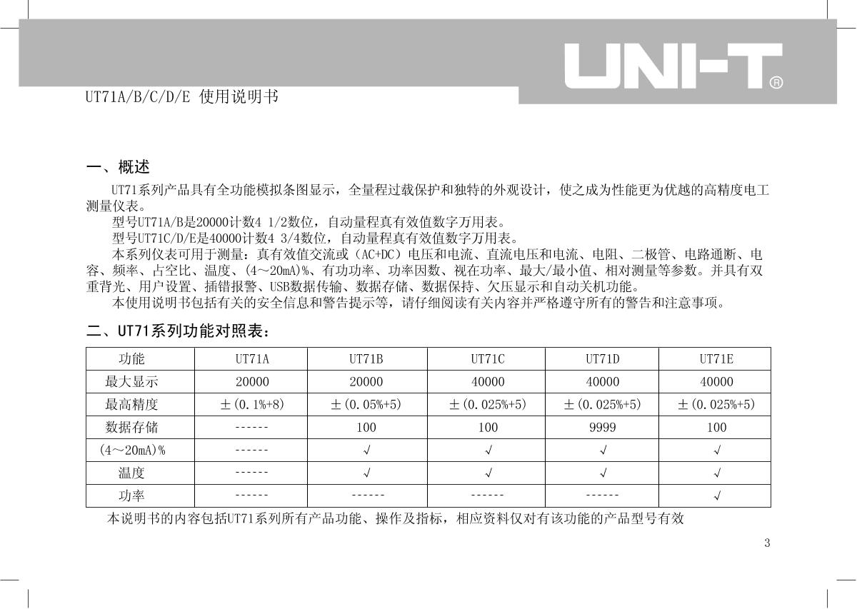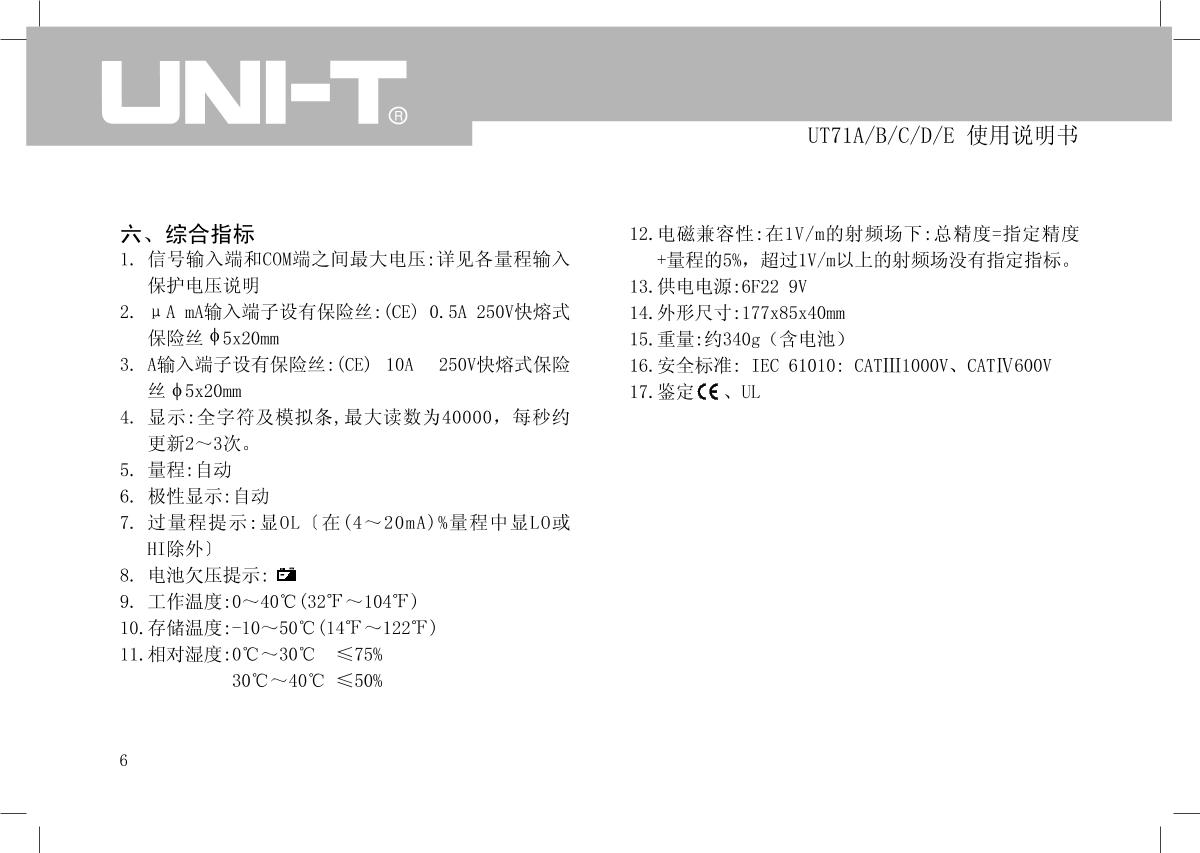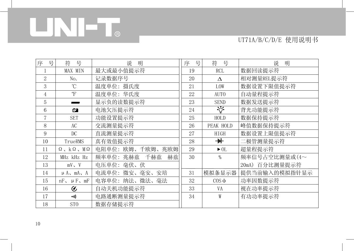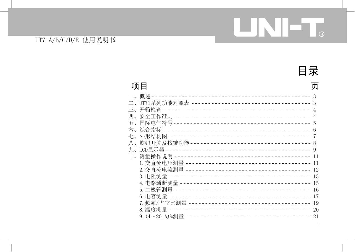 UNI-T UT71B Smart Digital Multimeter Manual,OI