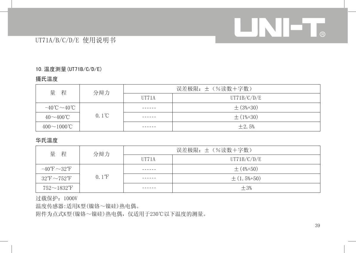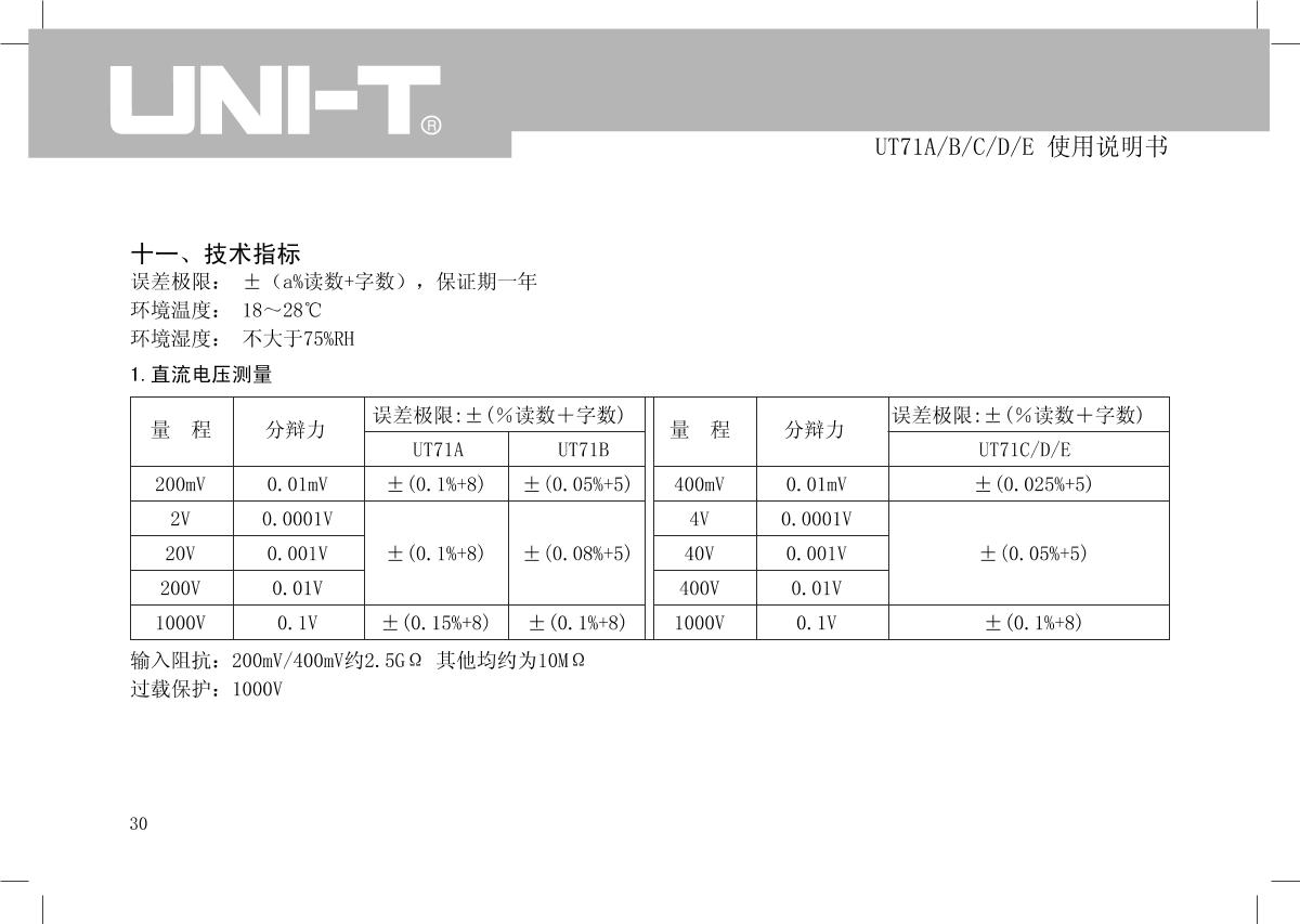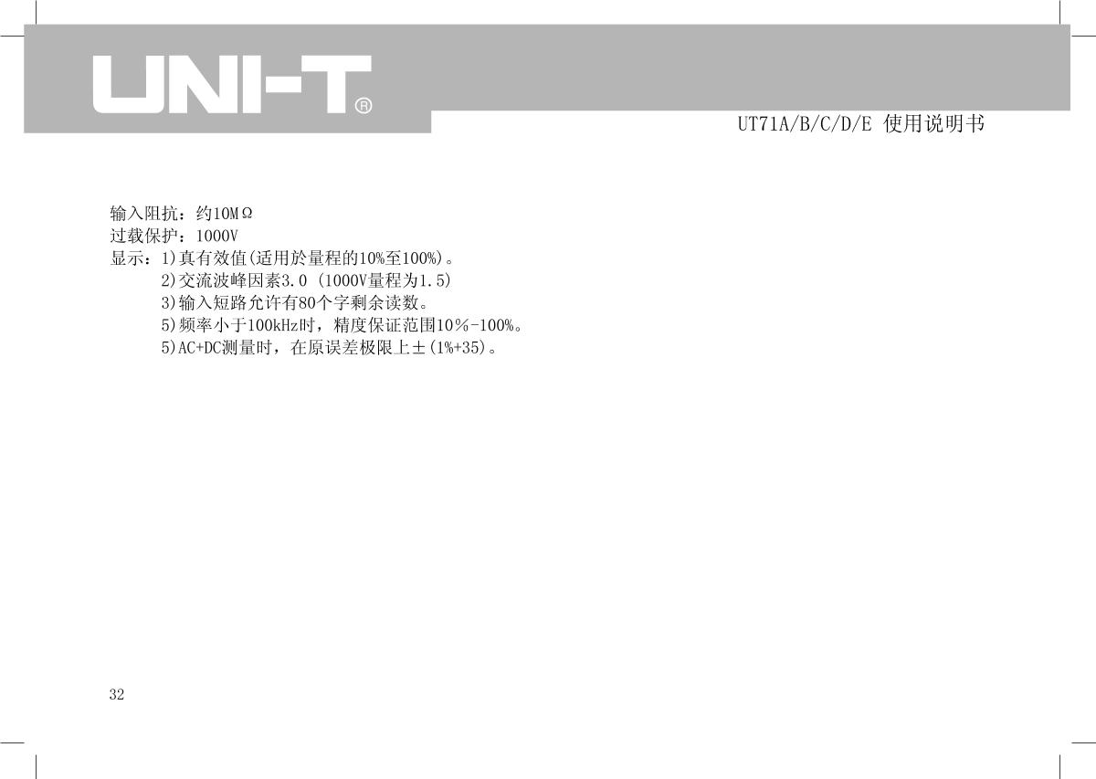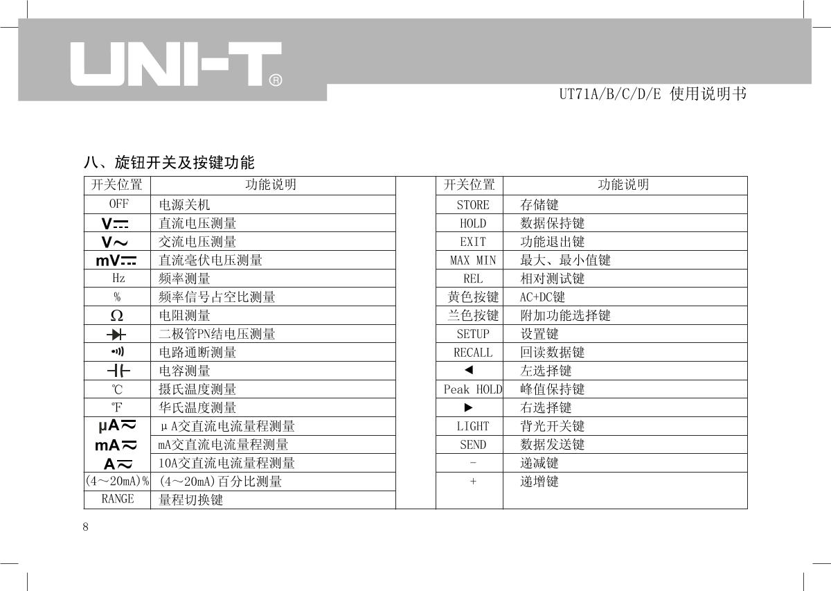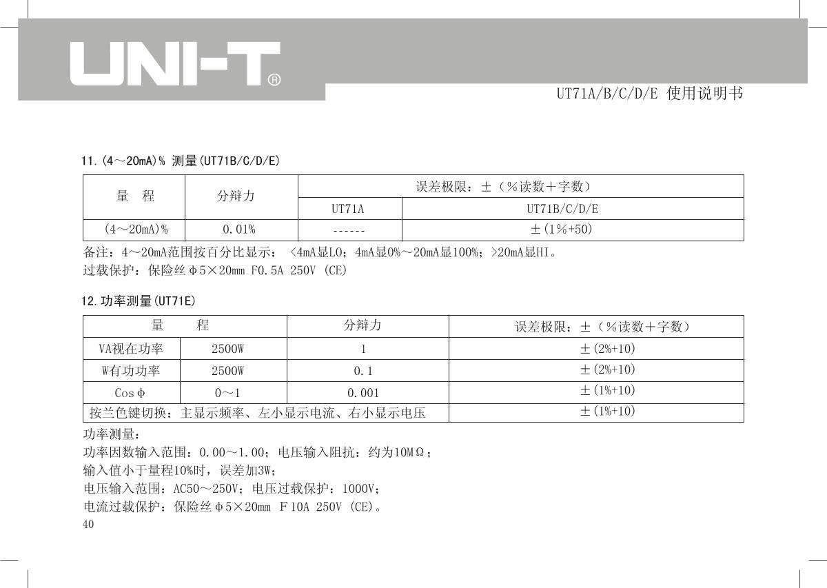 UNI-T UT71B Smart Digital Multimeter Manual,OI