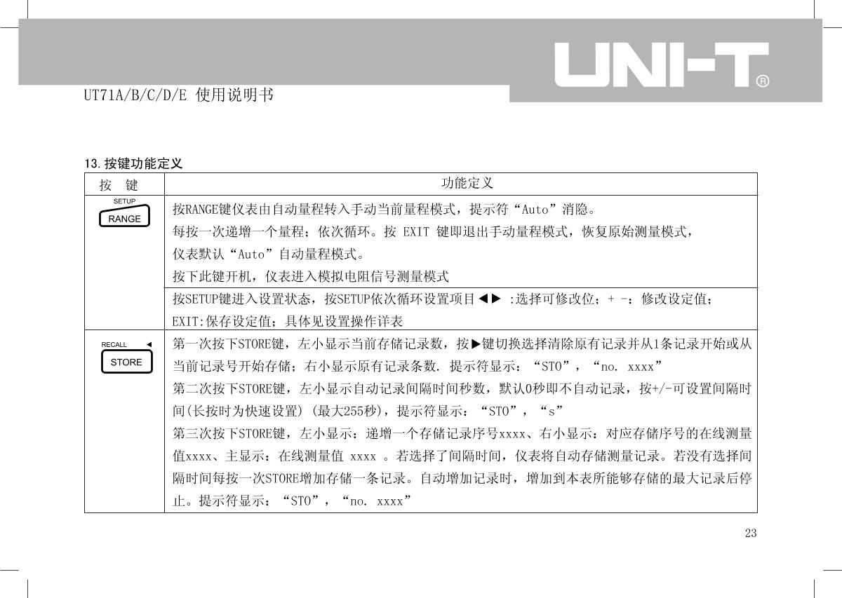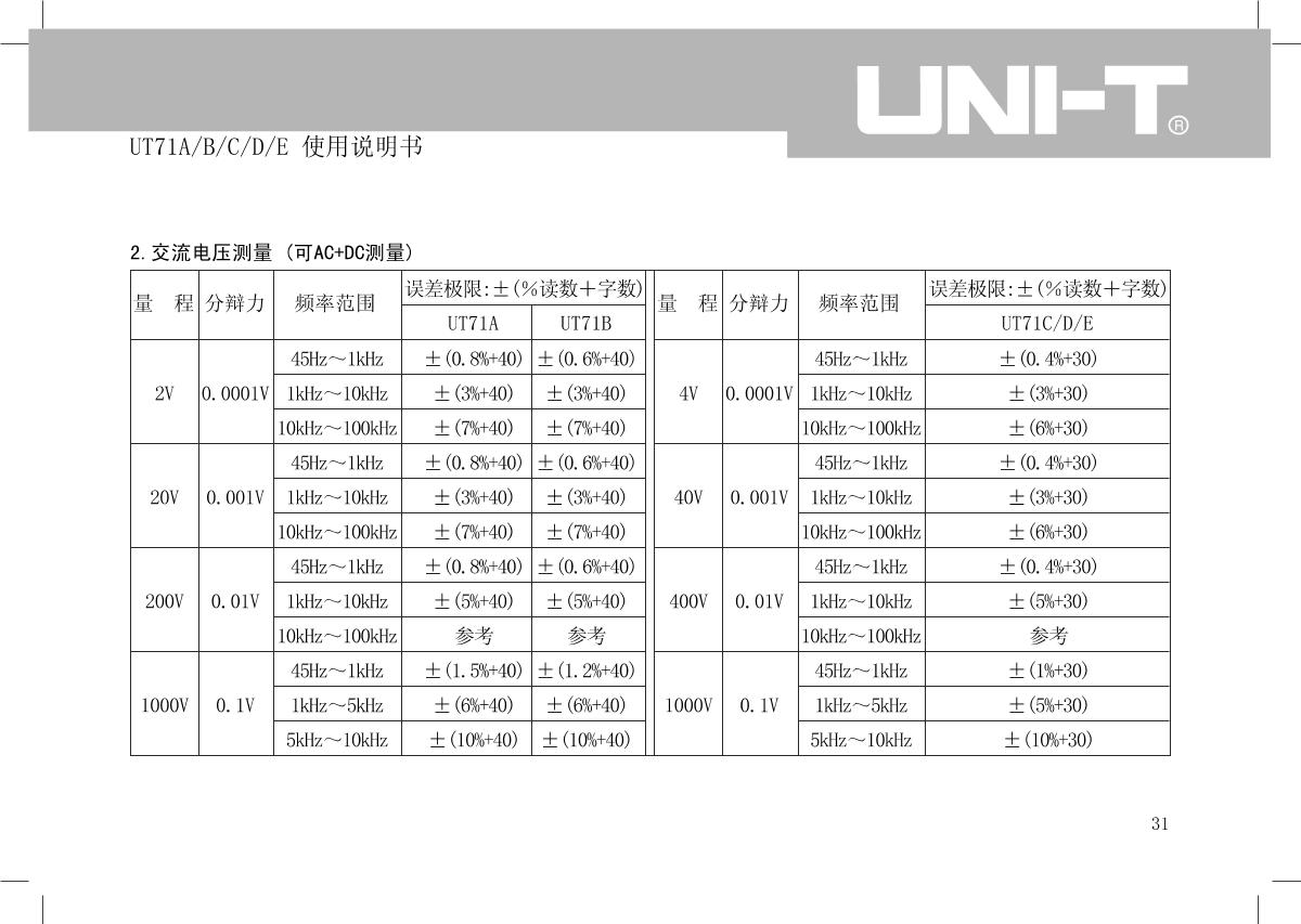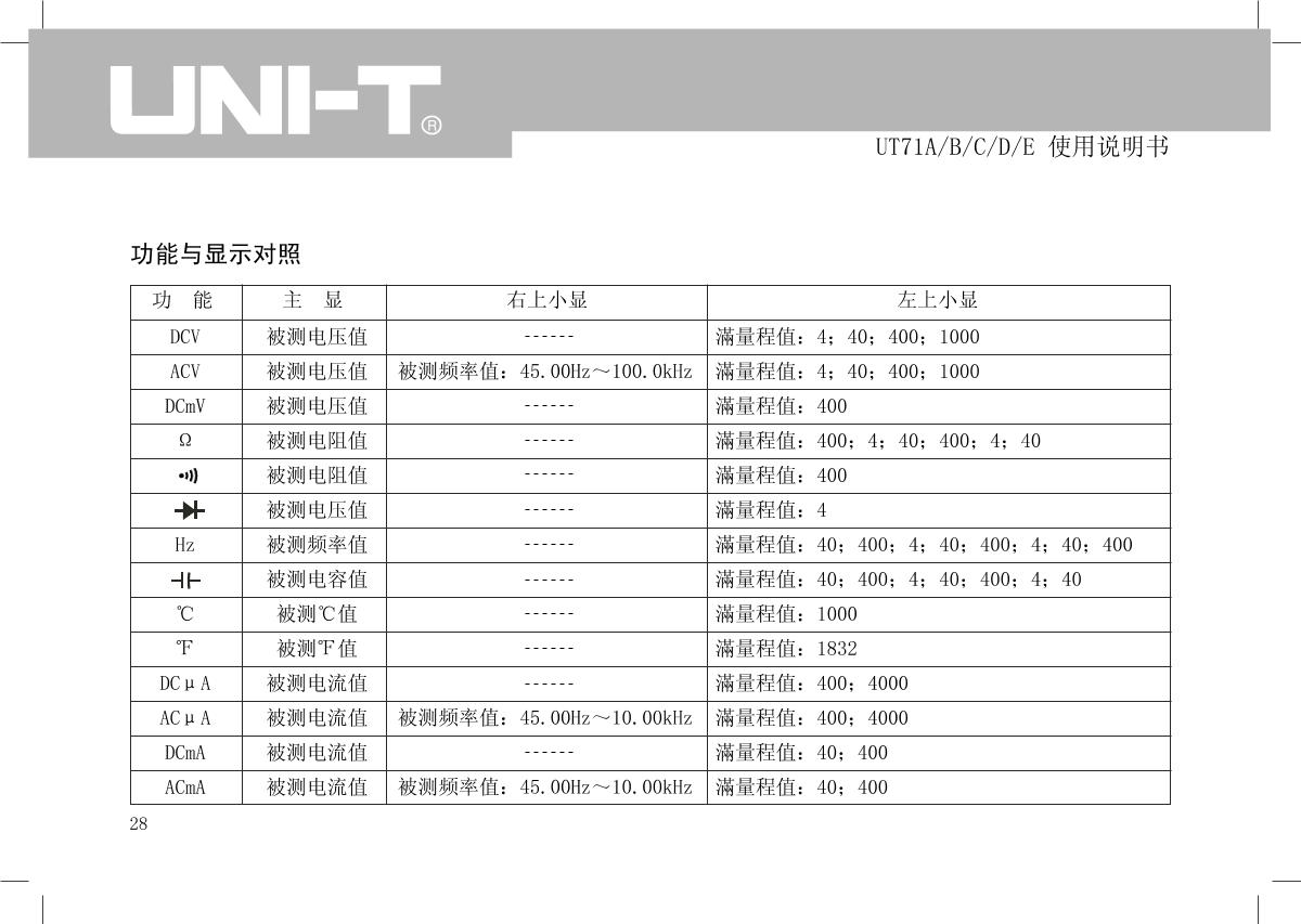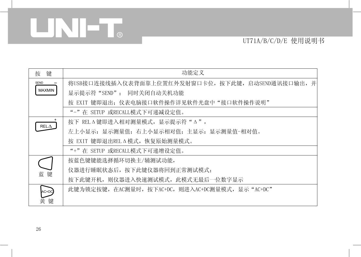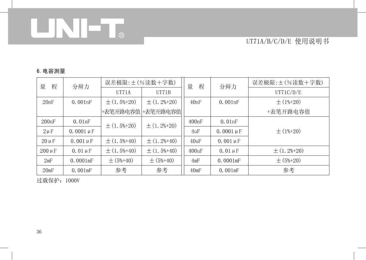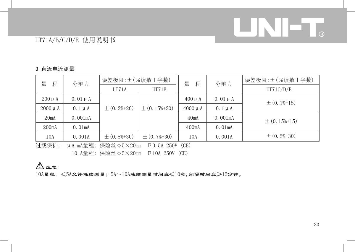 UNI-T UT71B Smart Digital Multimeter Manual,OI