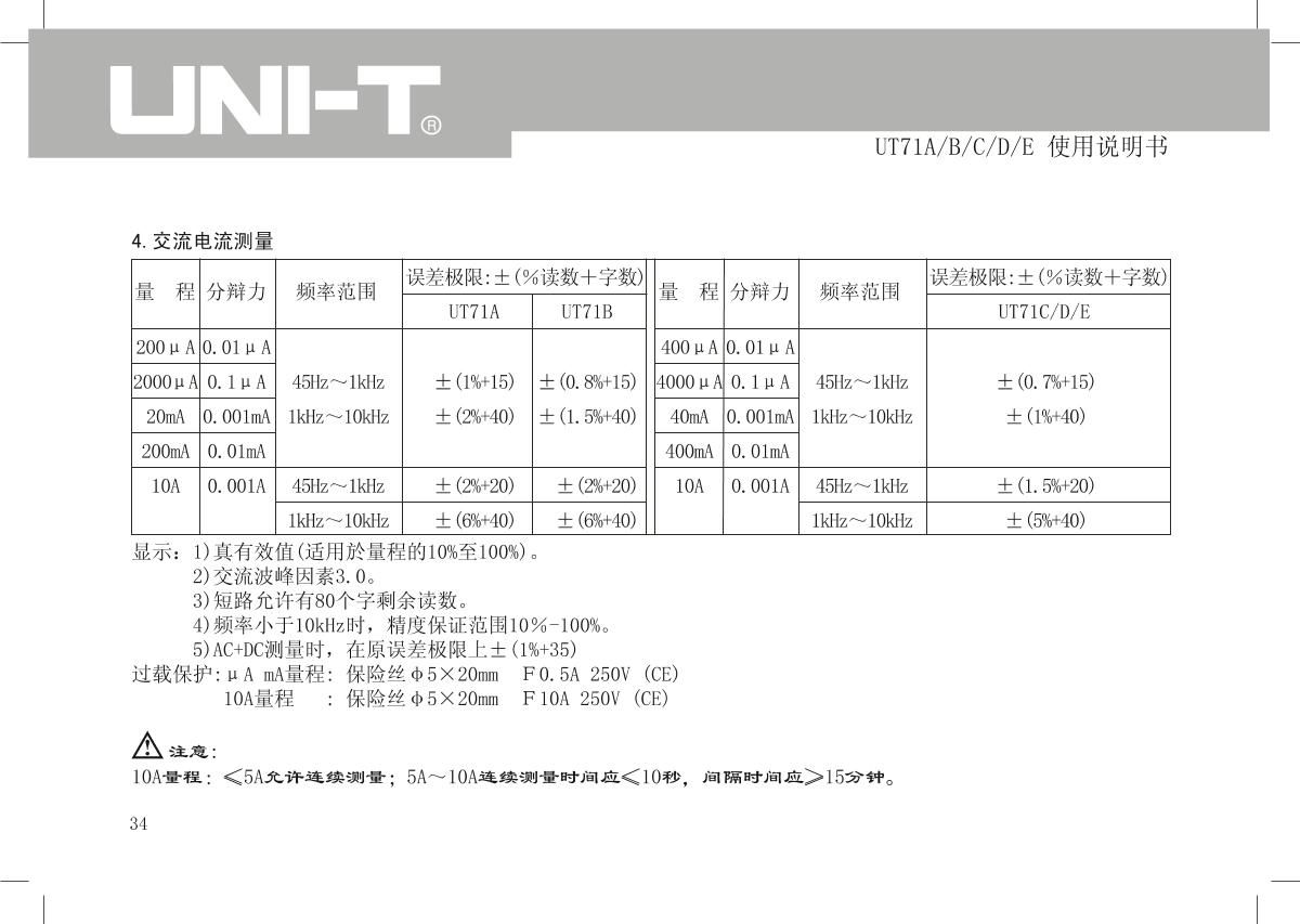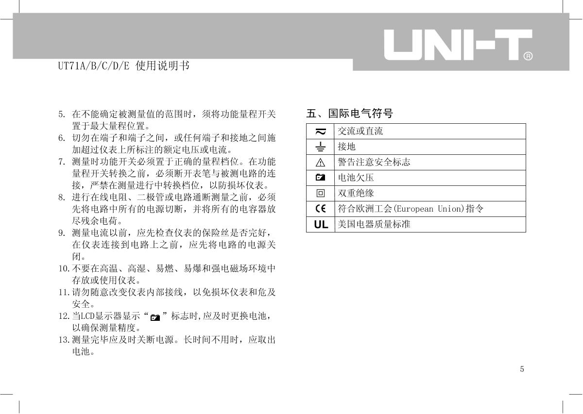 - 4UNI-T UT71B Smart Digital Multimeter Manual