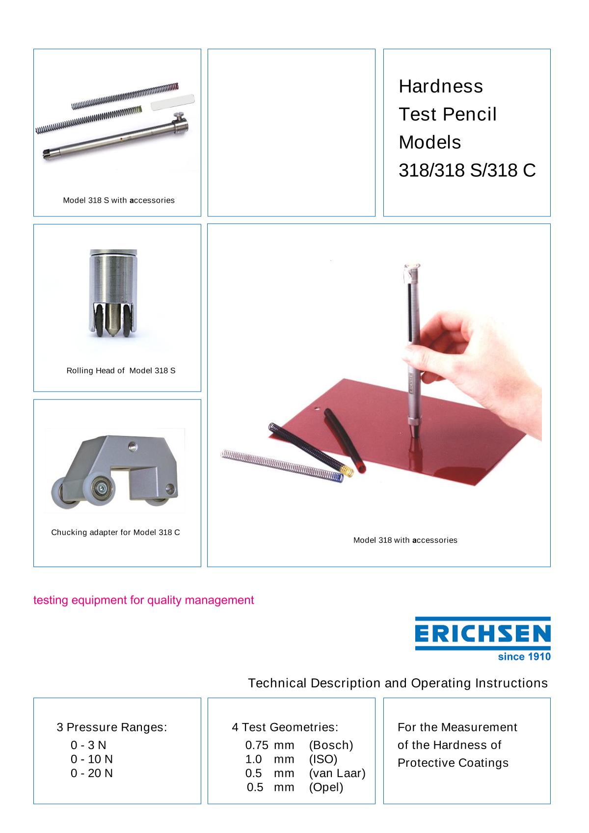 - 1Erichsen erichsen 318 (0.75mm) Hardness test rod brochure