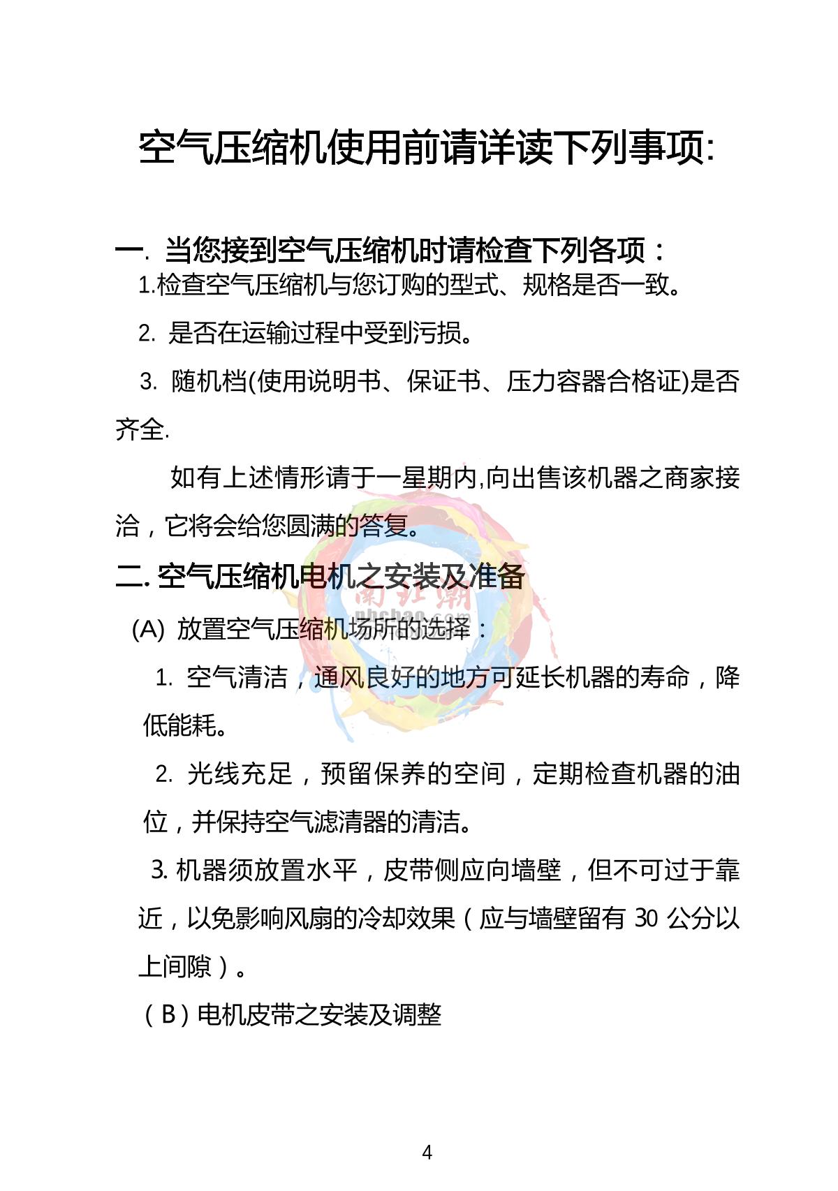 - 1DaSheng DA5001/4C Air Compressor without oil Manual