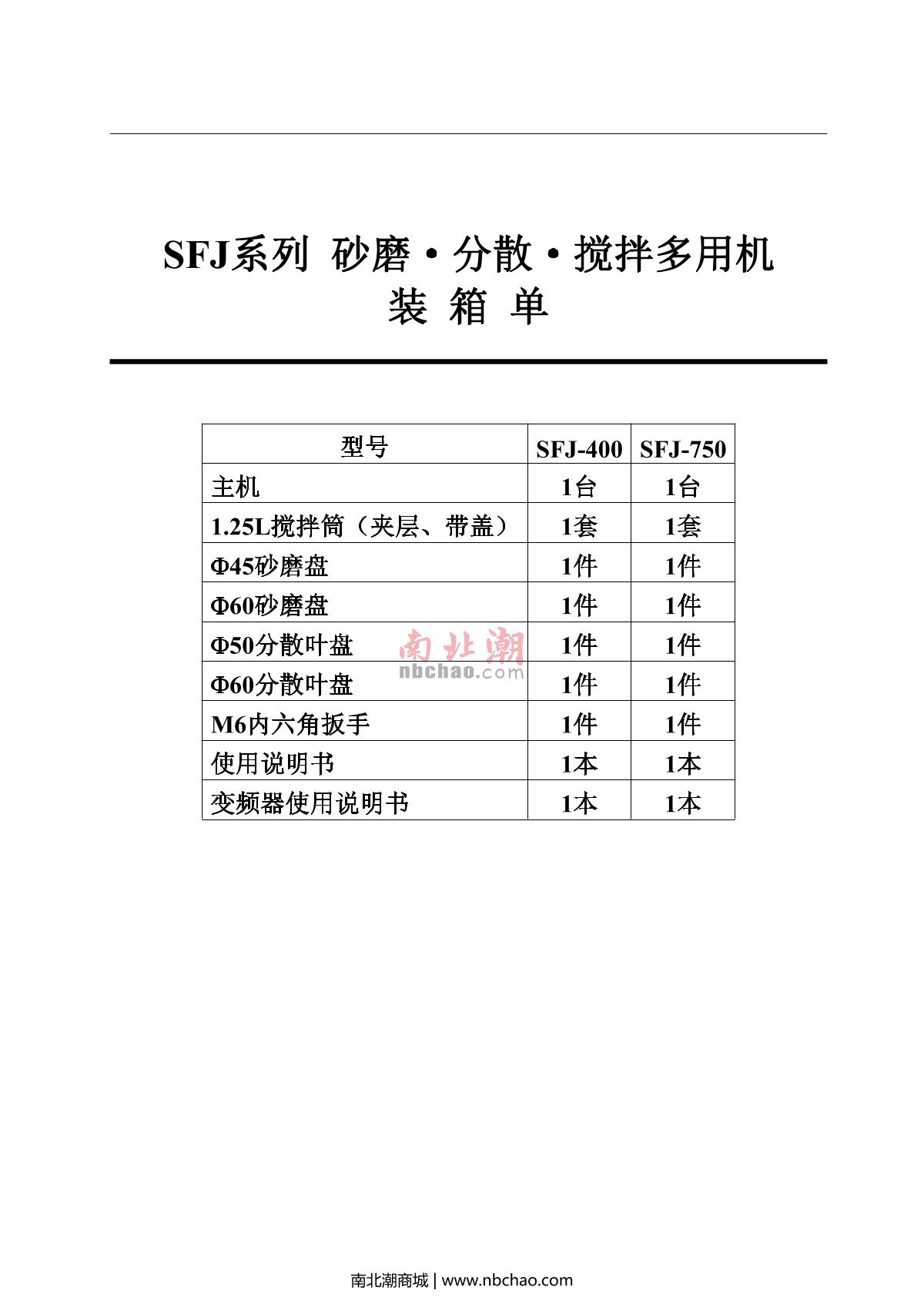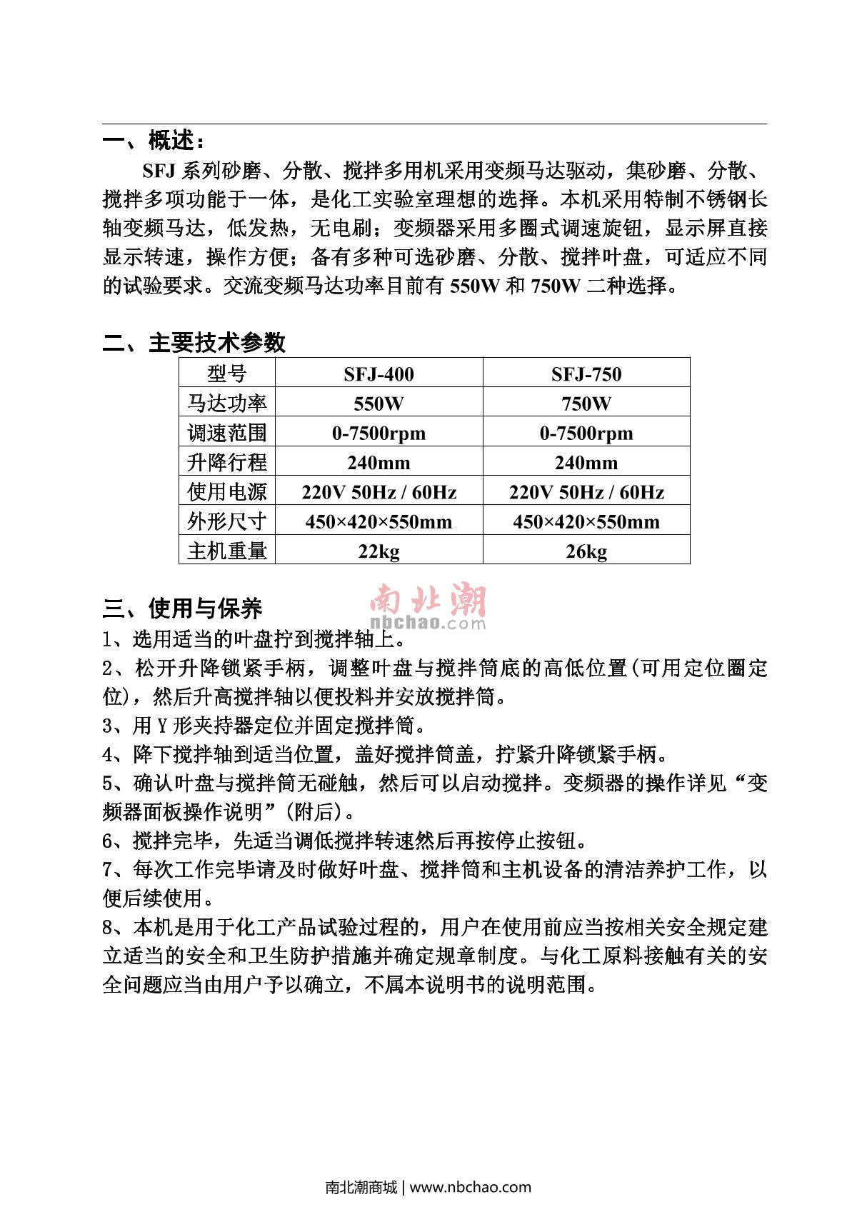 Moderner SFJ-750 (AC frequency conversion) Sanding, Dispersion, Stirring Multipurpose Machine (AC Frequency Converter) Manual,OI