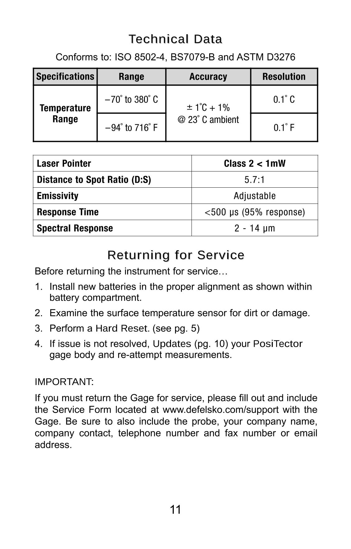 Defelsko PosiTector IRT3 Infrared Thermometer Manual,OI