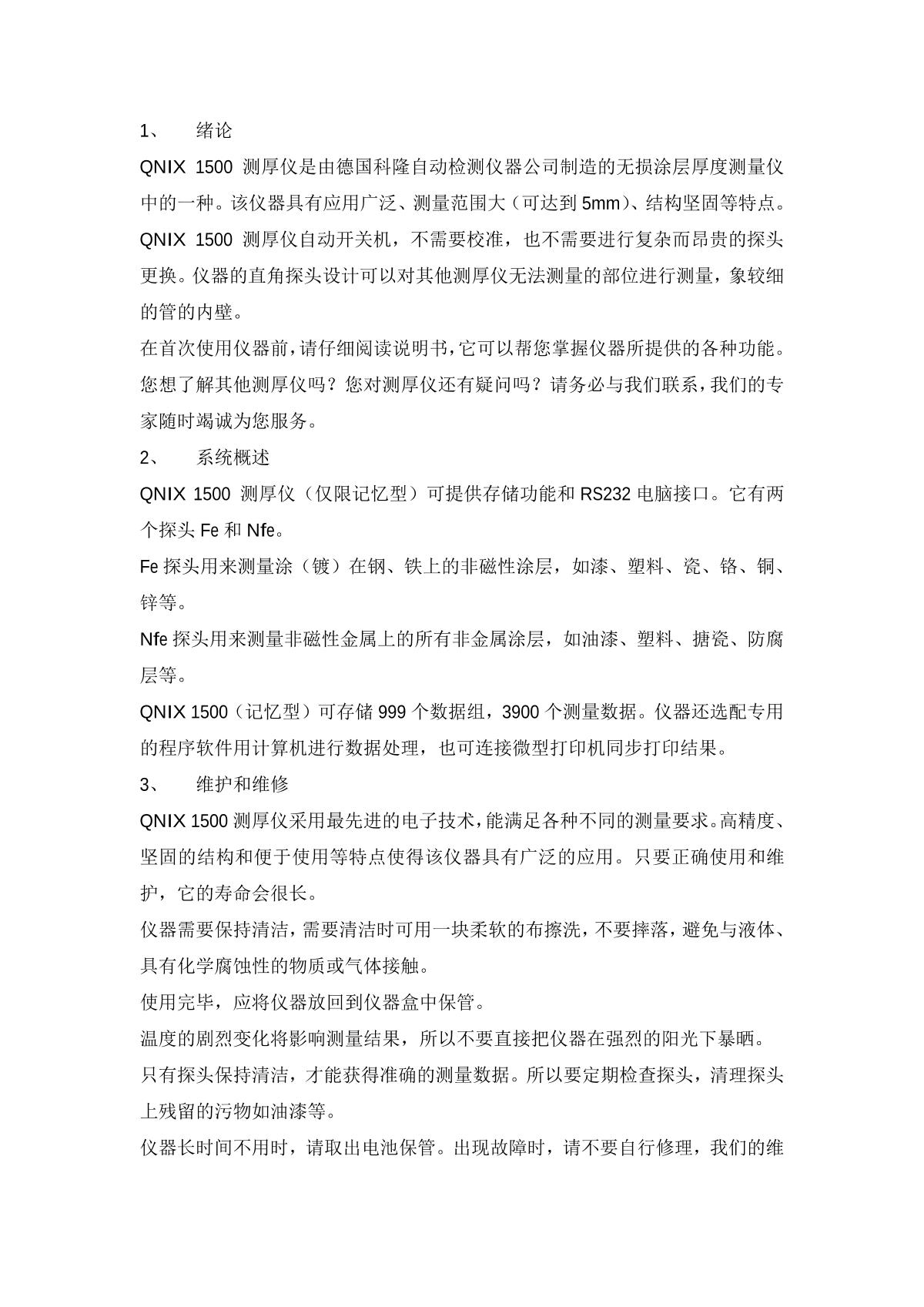 Qnix QNix 1500 Coating Thickness Gauge Manual,OI