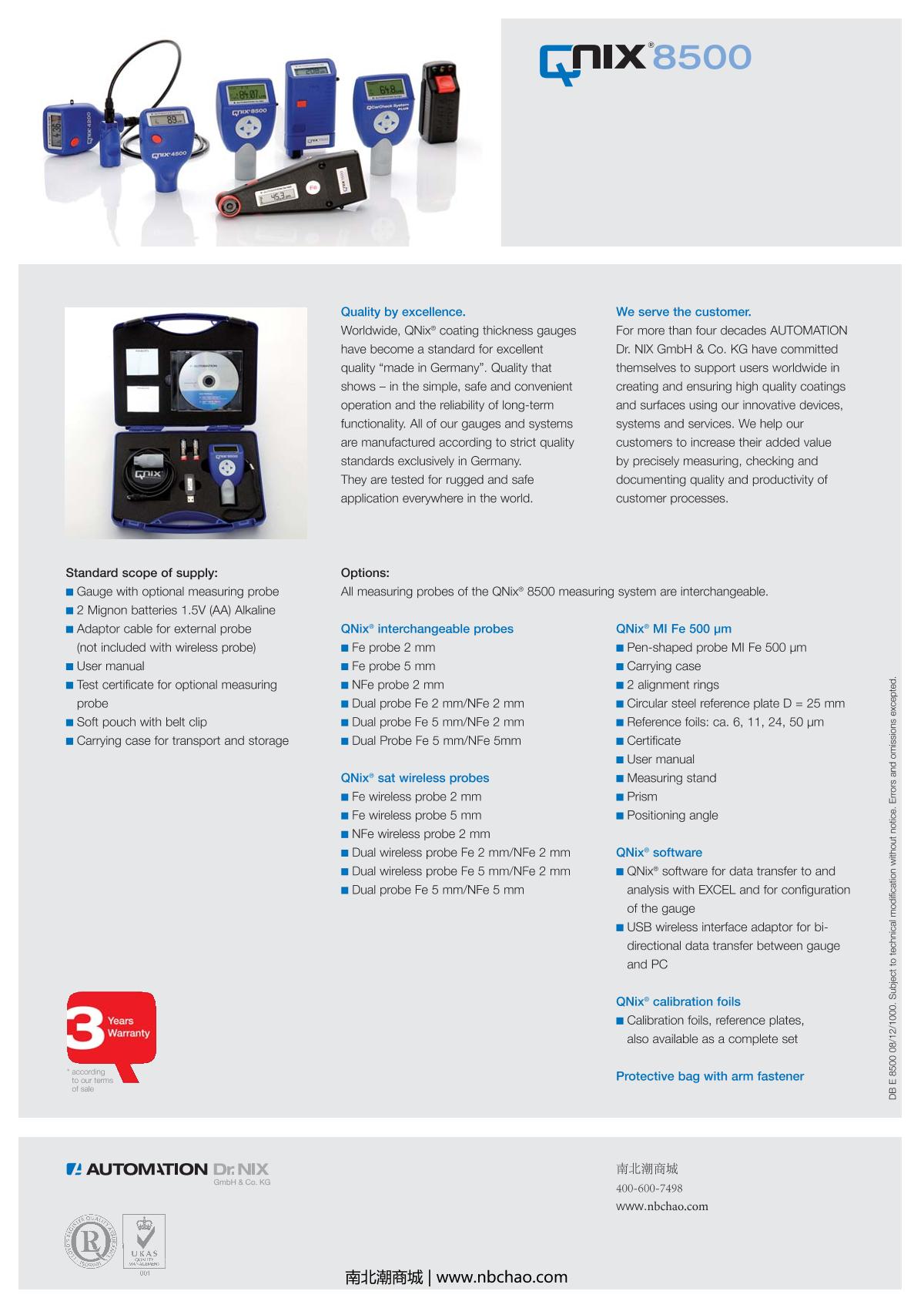 Qnix QNix8500+Fe RF5mm Coating Thickness Gauge brochure