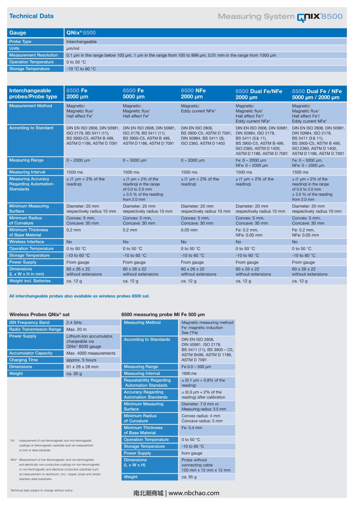 Qnix QNix8500+Fe/NFe 2mm Coating Thickness Gauge brochure