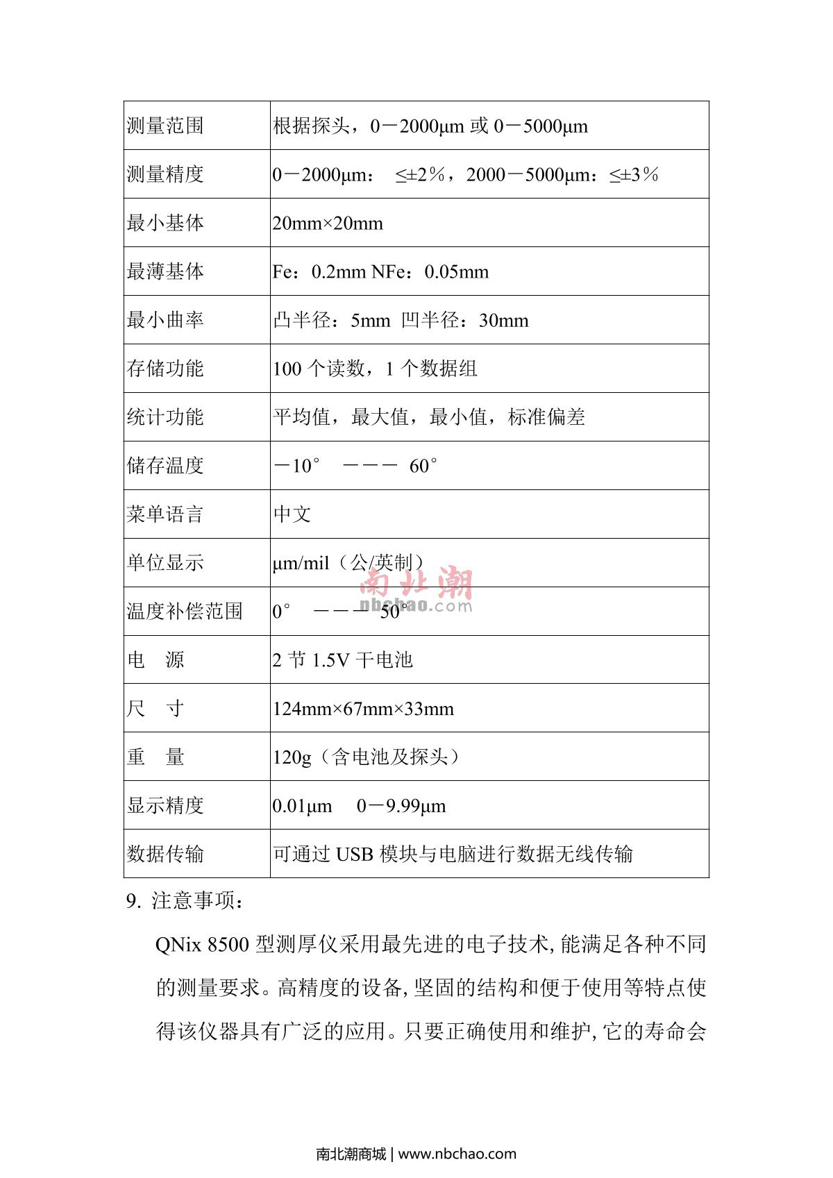 Qnix QNix8500+Fe/NFe 5mm Coating Thickness Gauge Manual,OI