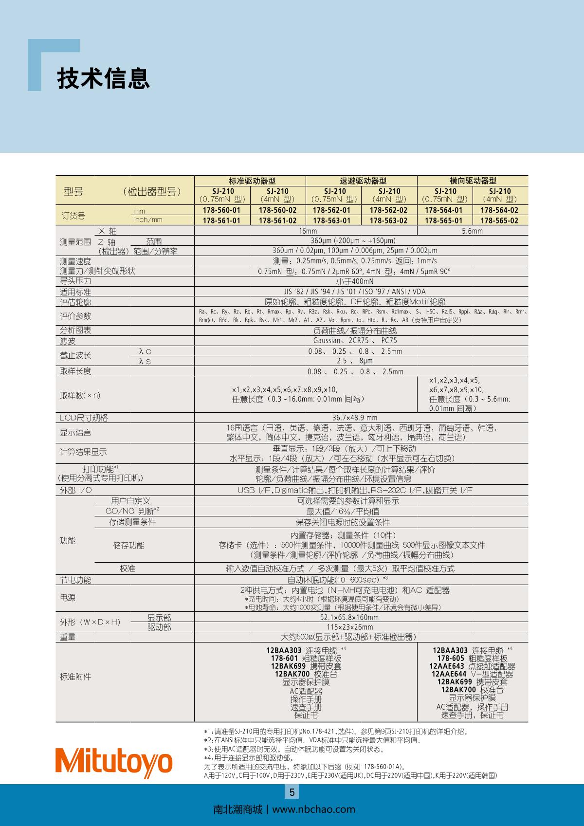 - 7Mitutoyo SJ-210 (0.75mN) Backoff type Roughness Gauge brochure