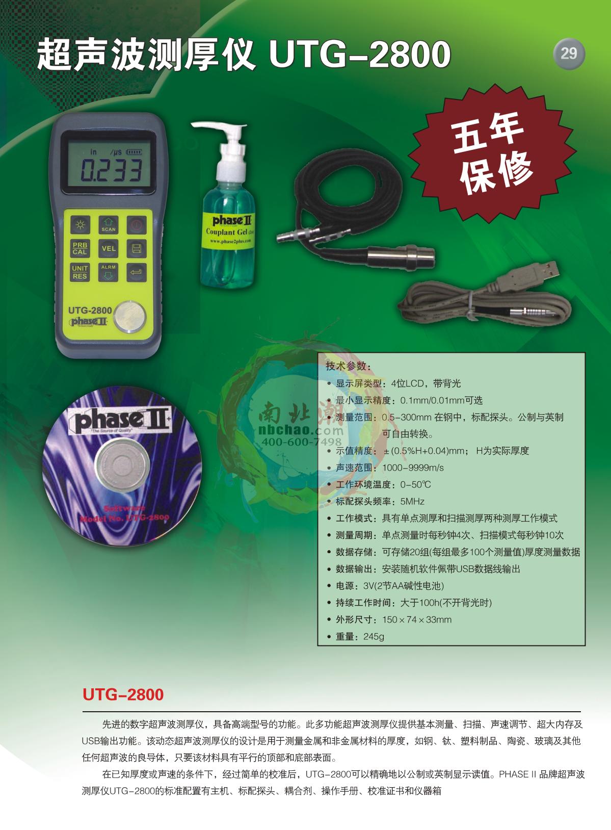 PhaseII UTG-2800 Ultrasonic Thickness Gauge brochure