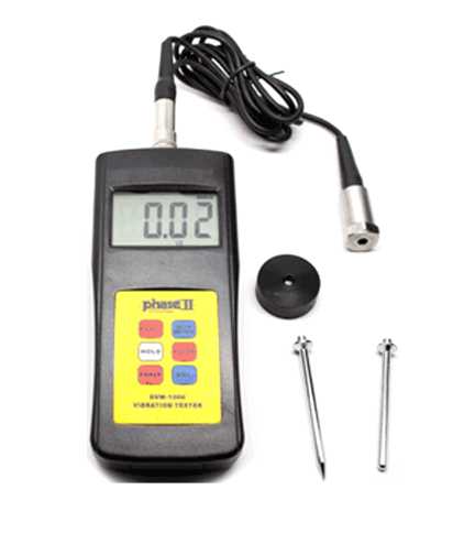 The PHASE II brand has now introduced the professional DVM-1000 vibrometer to our product line. This versatile vibrometer will measure velocity, acceleration, displacement, and rotational speed. The full frequency range is used for a wide range of inspections.