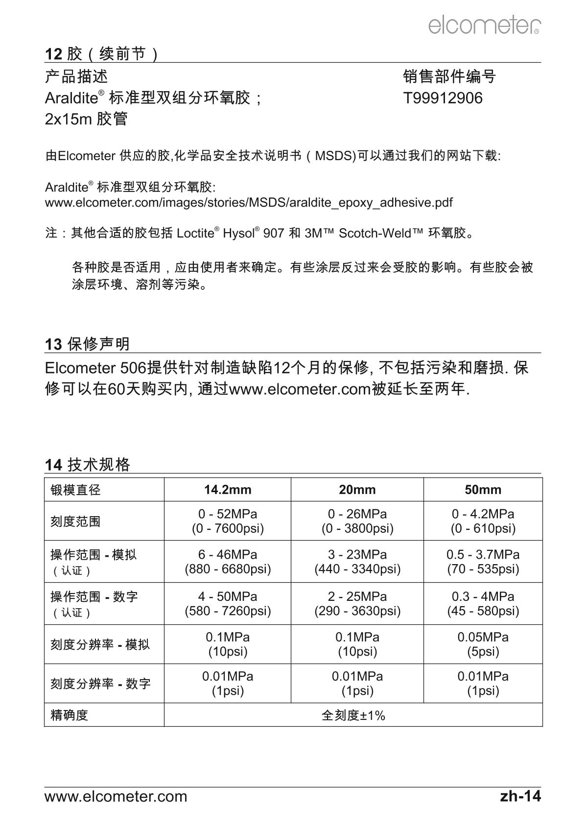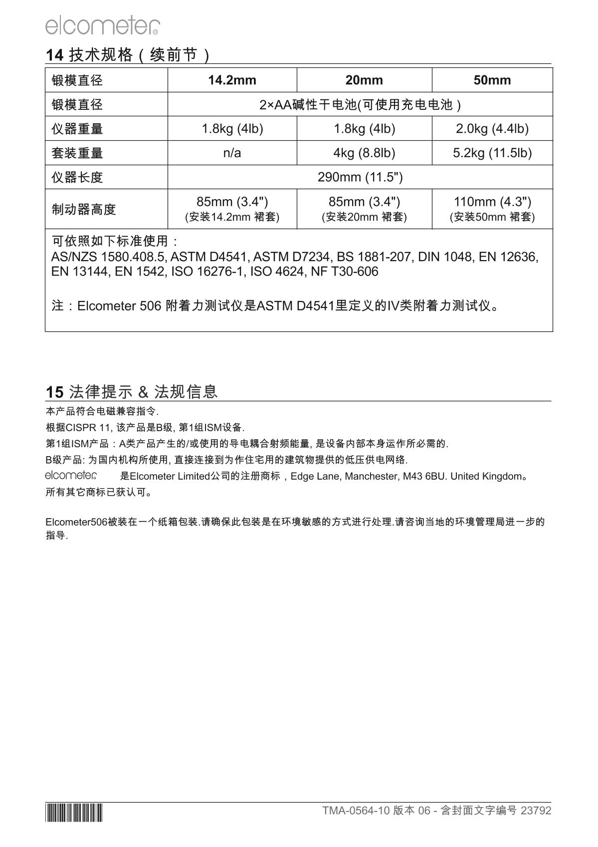 Elcometer F506-20DC Drawing adhesion Tester Manual,OI