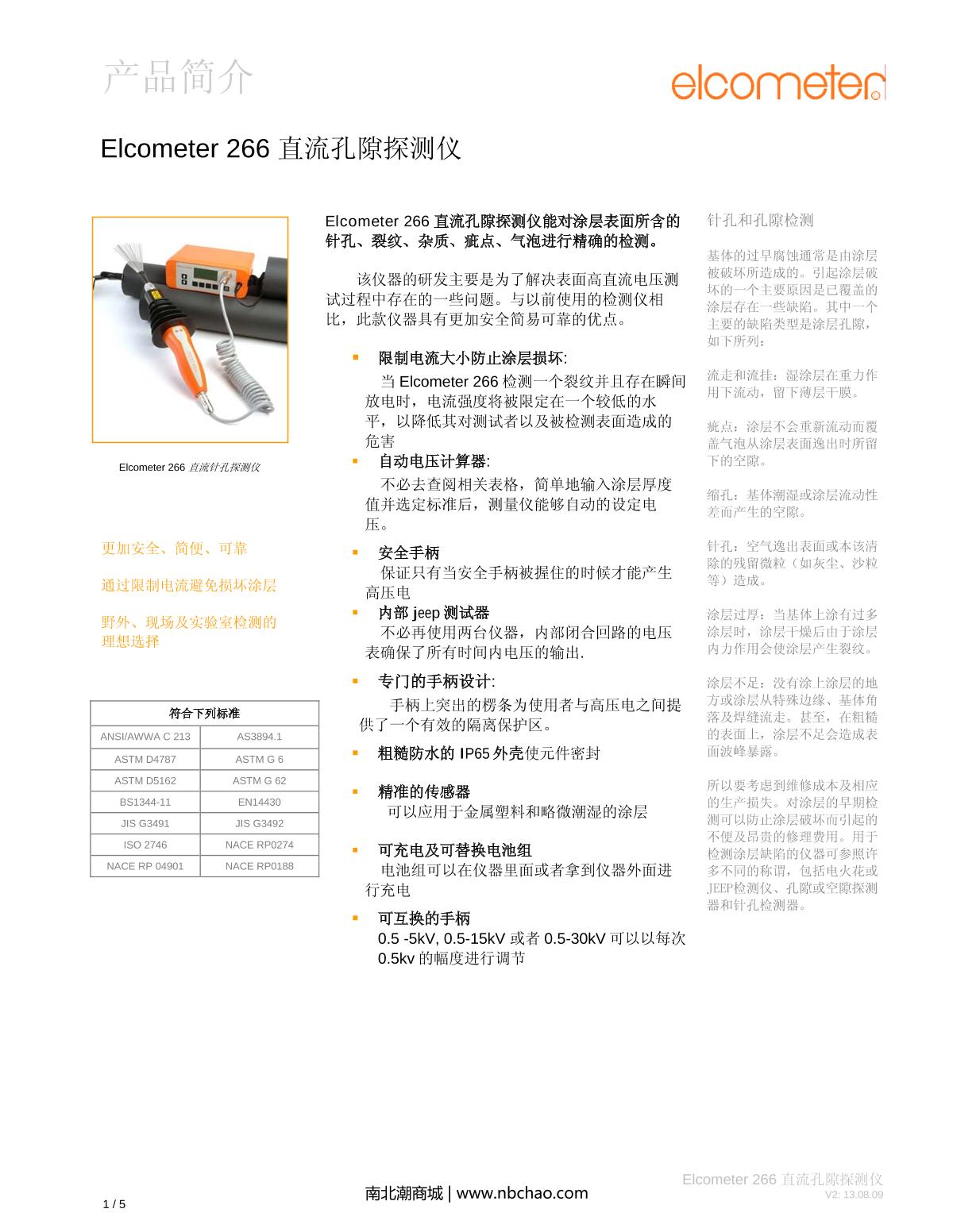 Elcometer D266----4 DC (DC) Holiday Detector brochure