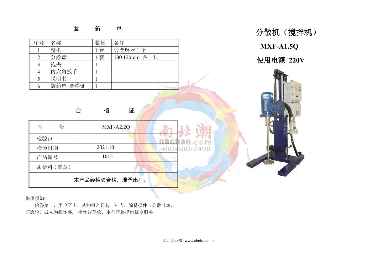 MuXuan MXF-A1.5Q Small Batch Mixing Disperser Manual,OI