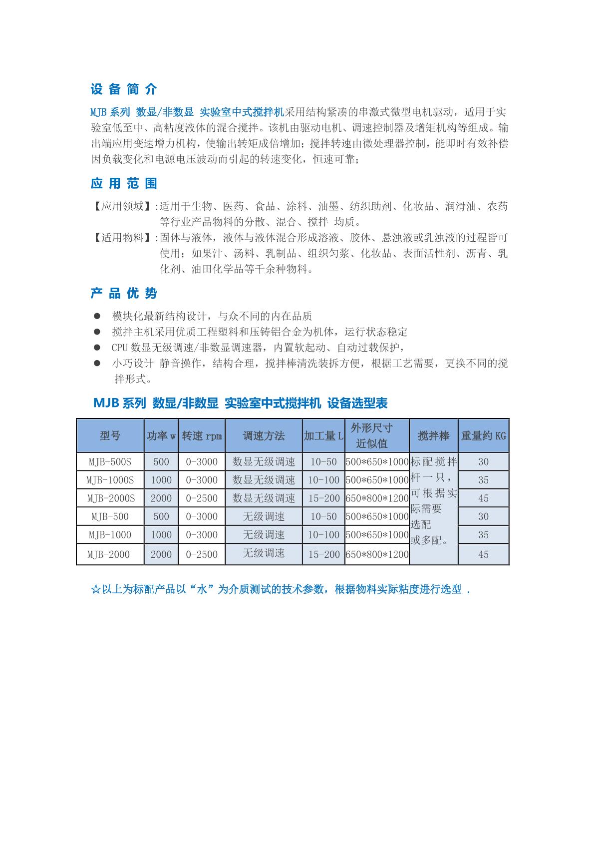 MuXuan MJB-1000 Small batch Stirrer brochure