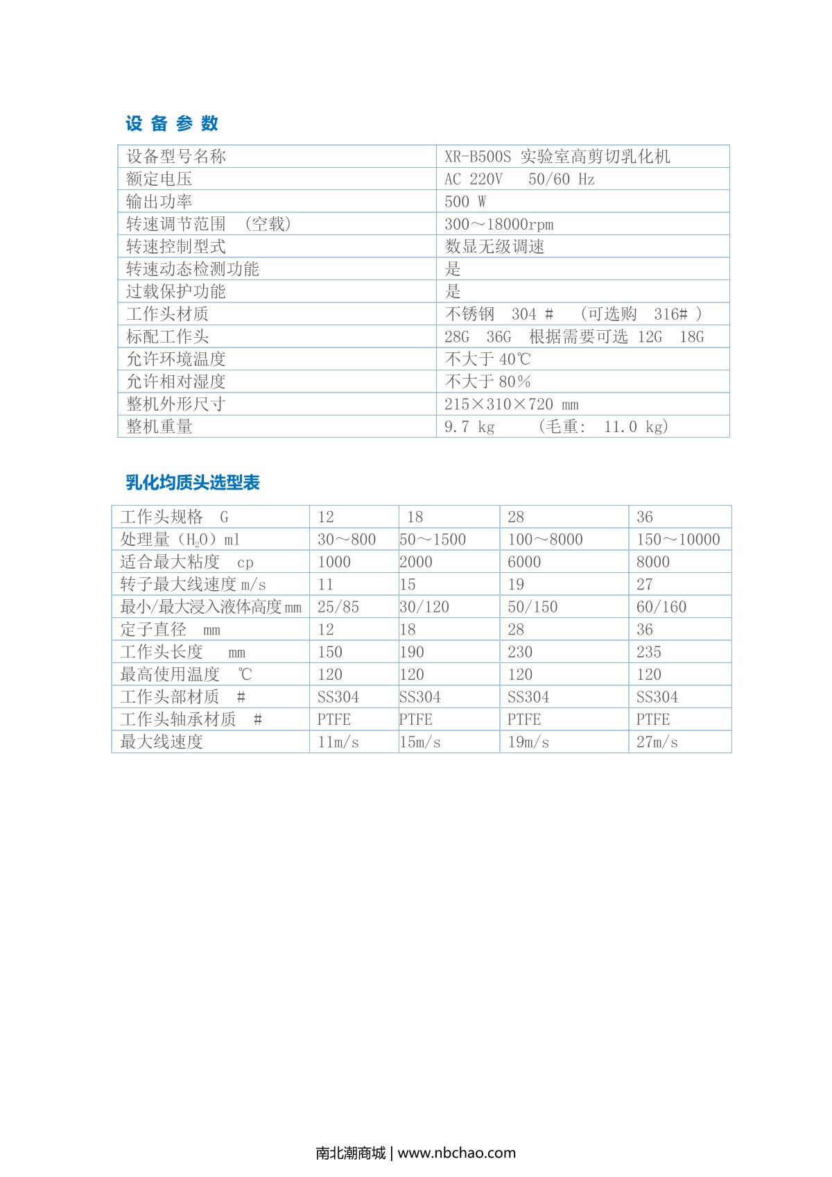 Muxuan XR-B500S LABOratory Homogenizer Mulser digital display stepless speed regulation 500W100~8000mL(28G):150~10000mL(36G)stepless speed regulation19m/s(28G);27m/s(36G)¥2280.0SE -