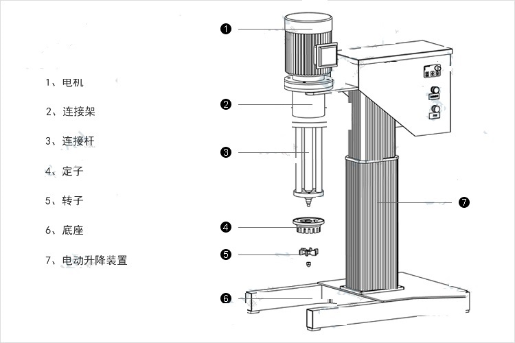 [Applicable materials]: It can be used in the process of mixing solid and liquid, liquid and liquid to form a solution, colloid, suspension or emulsion; such as juice, soup, dairy products, tissue homogenate, cosmetics, surfactants, Asphalt, emulsifier, oilfield chemicals and other materials.