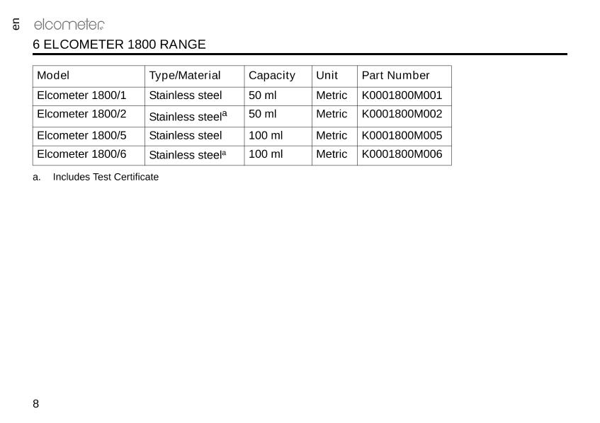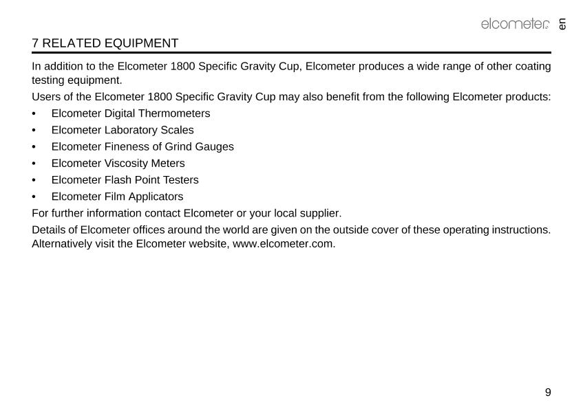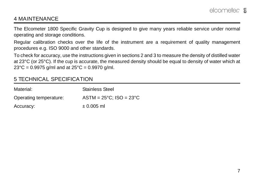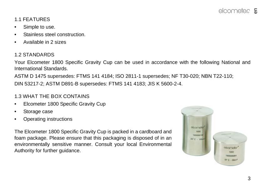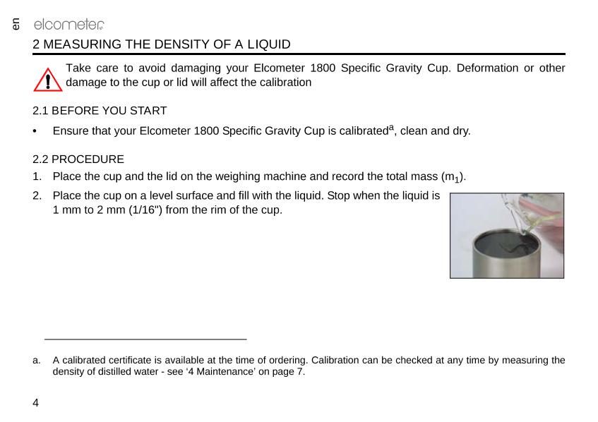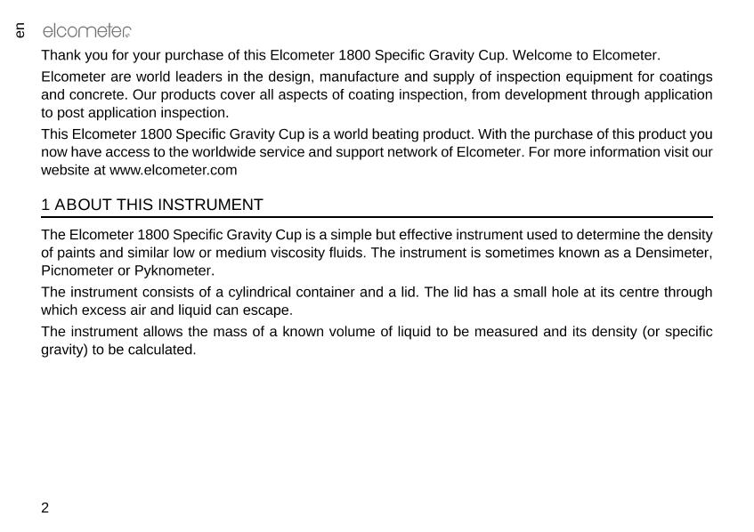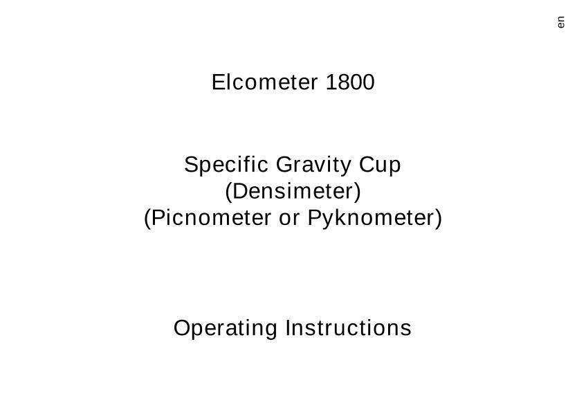 - 2Elcometer Elcometer 1800/5 Specific Gravity Cup Manual