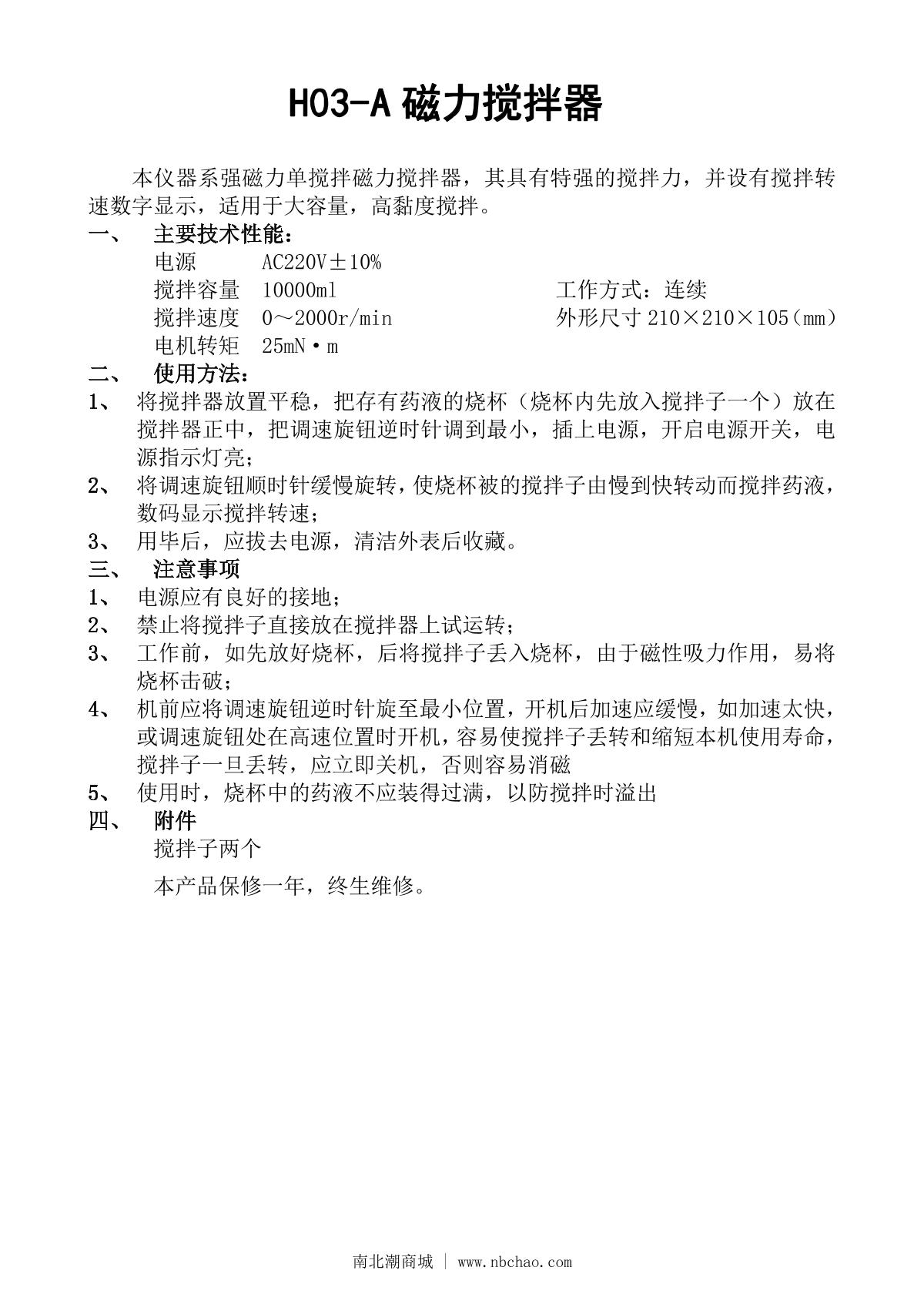 ChiJiu H03-A Magnetic Stirrer Manual,OI