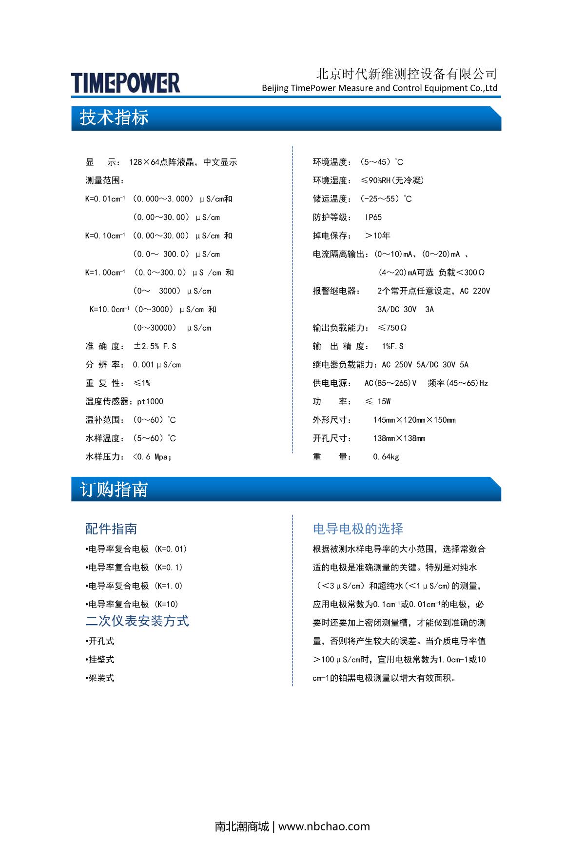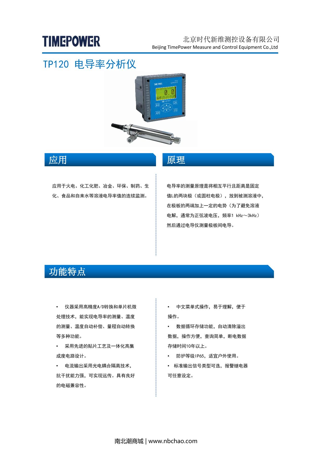 TIMEPOWER TP120(k=0.1) Conductivity analyzer brochure