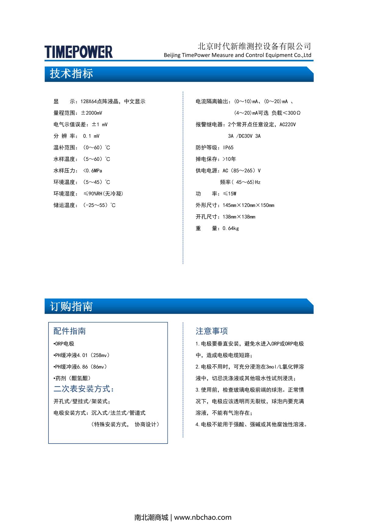 TIMEPOWER TP160 ORP Analyzer brochure