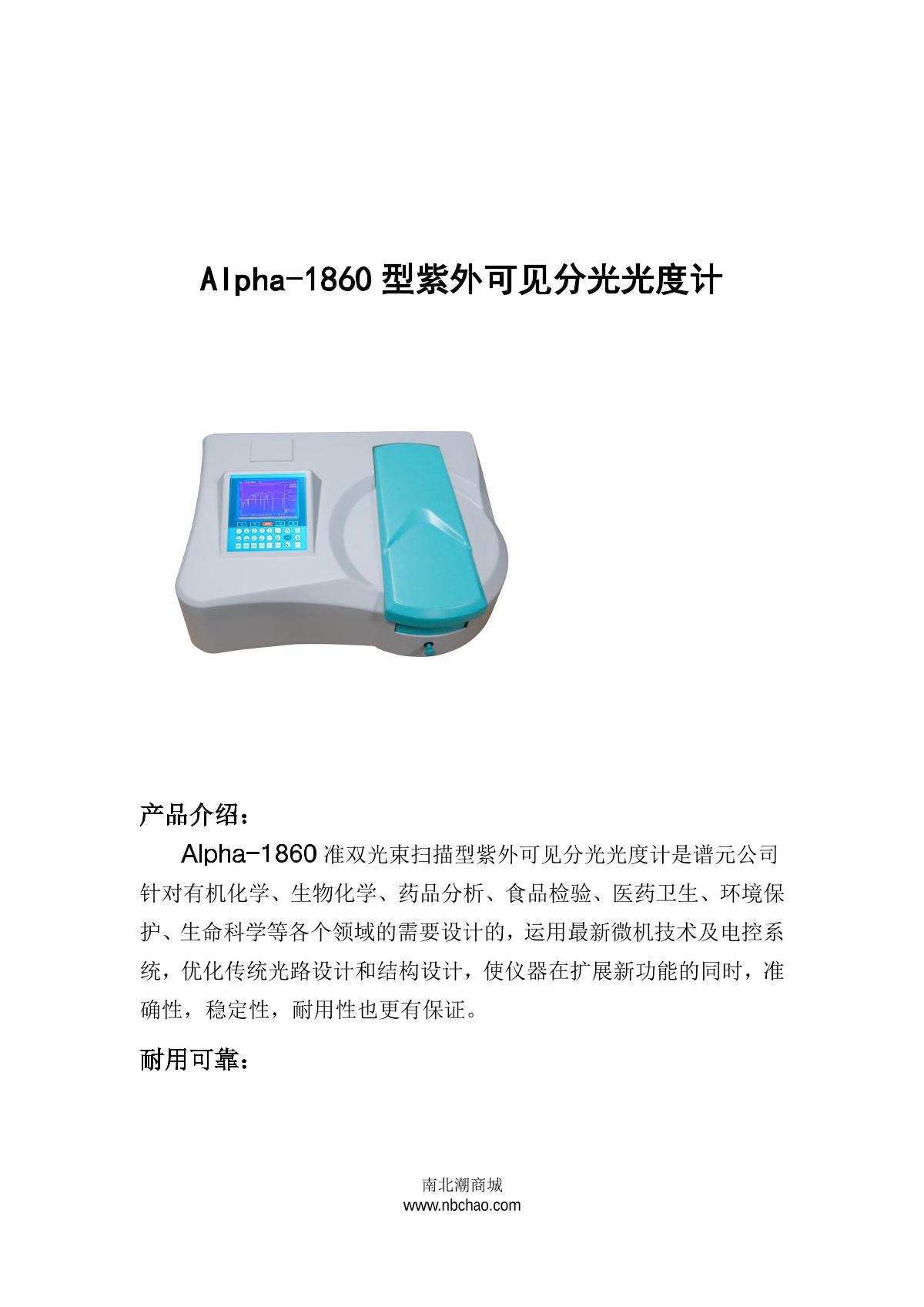- 6laspec Alpha-1860 Ultraviolet-visible spectrophoto-meter brochure