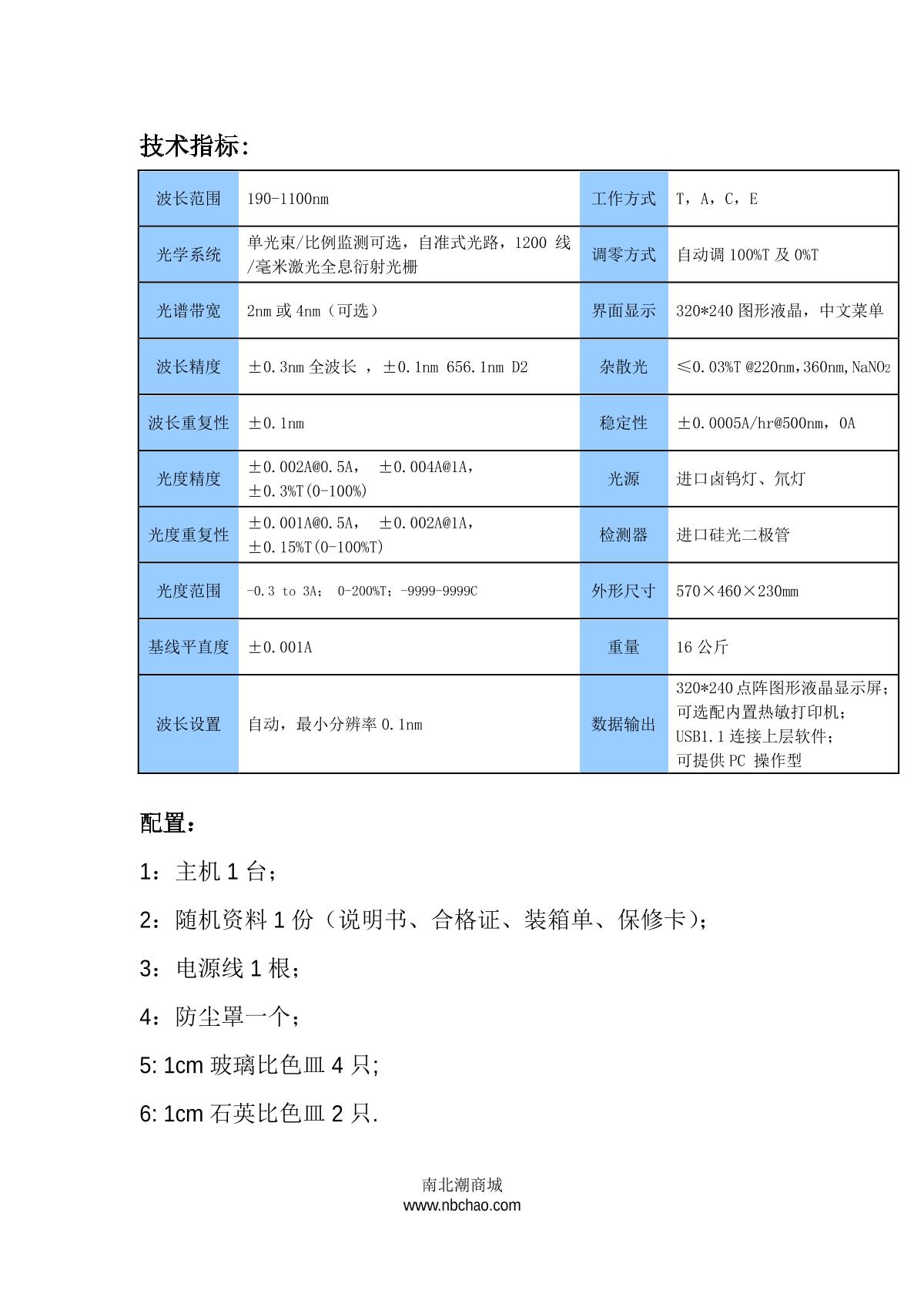 - 8YUEFENG 7230G Visible Spectrophotometer brochure