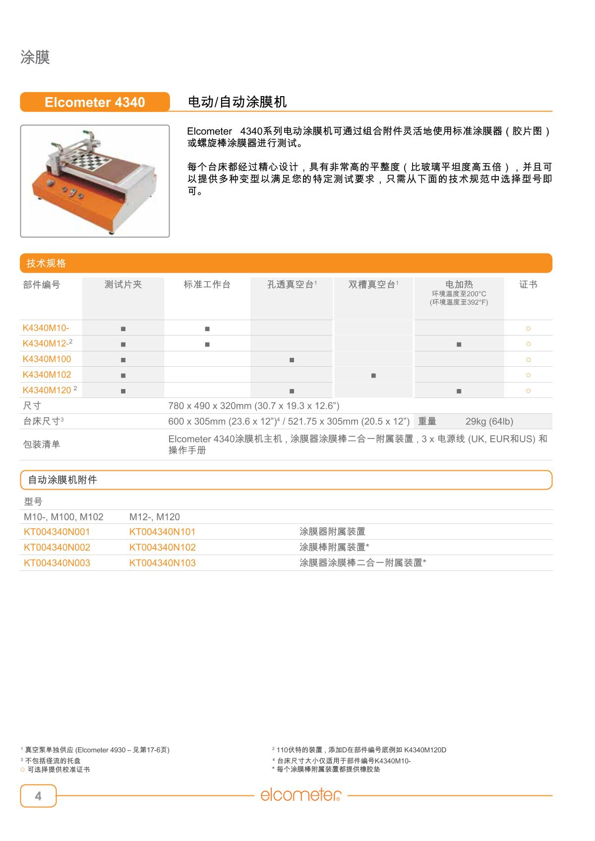 Elcometer Elcometer 4340 Electric/Automatic Film Applicators brochure