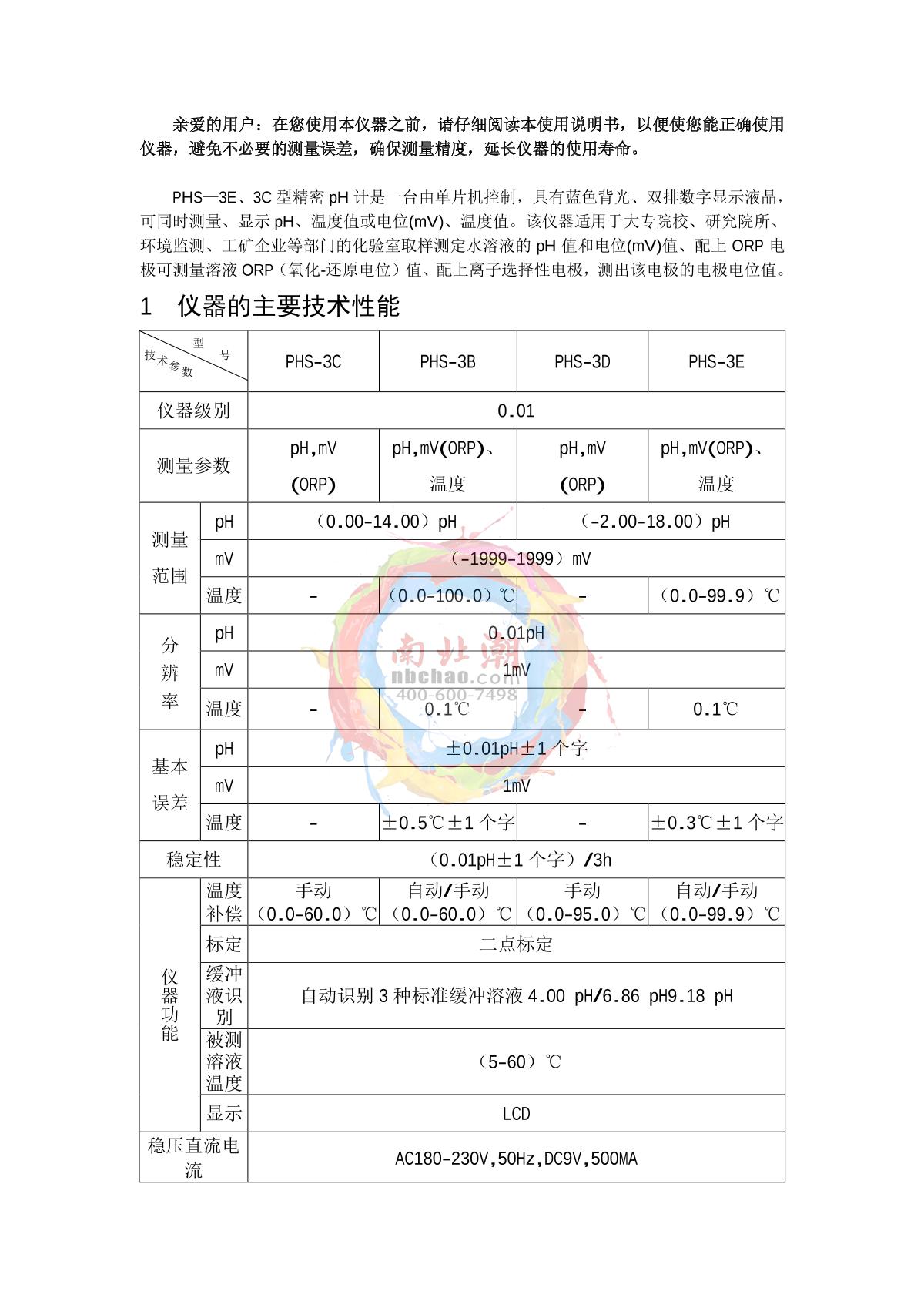 YUEFENG PHS-3B Laboratory acidity meter Manual,OI