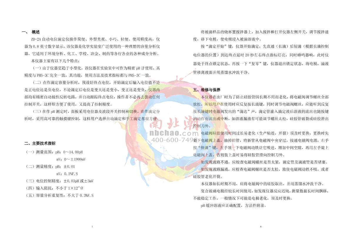 YUEFENG ZD-2A Potentiometric titrator Manual,OI