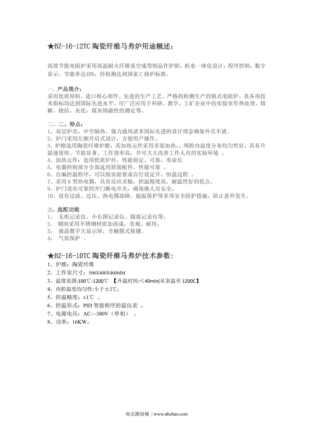 BoZhen BZ-16-12TC Ceramic fiber muffle furnace brochure