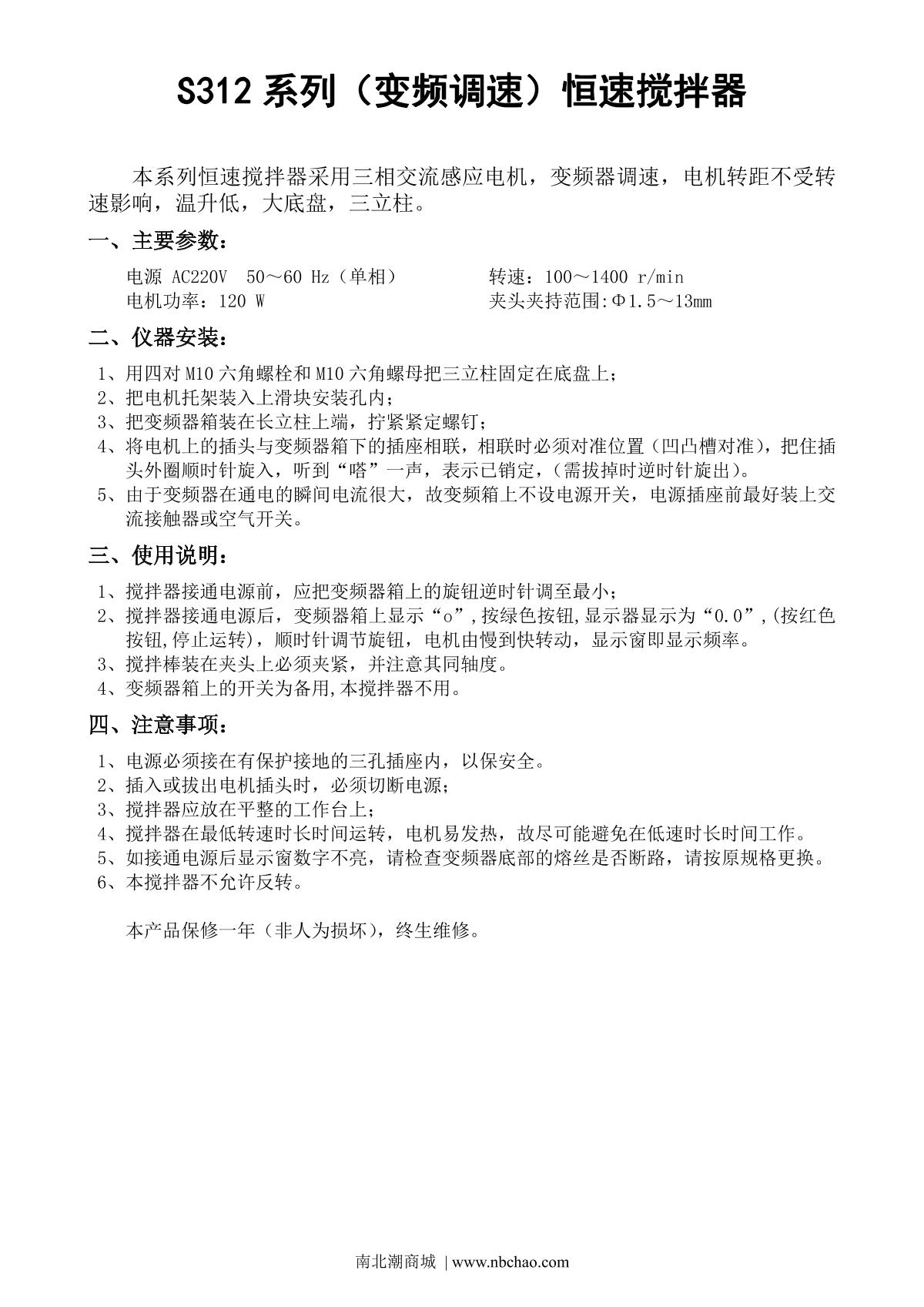 ChiJiu S312-120 Constant Speed Stirrer Manual,OI