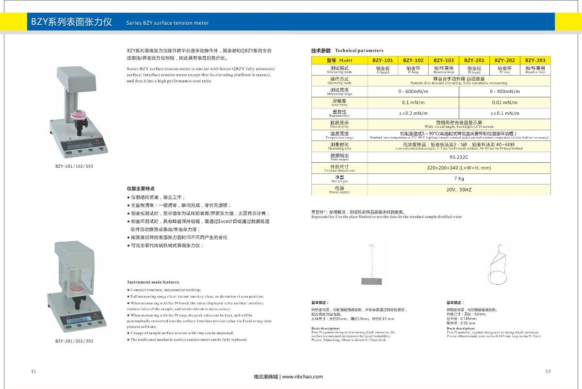 FANGRUI BZY100 + interfacial tensIon Meter, platinum plate ring and use 0-1000mN/m4.3 "color touchscreenFor both platinum plate and platinum ring0-1000mN/m¥8800.0SE