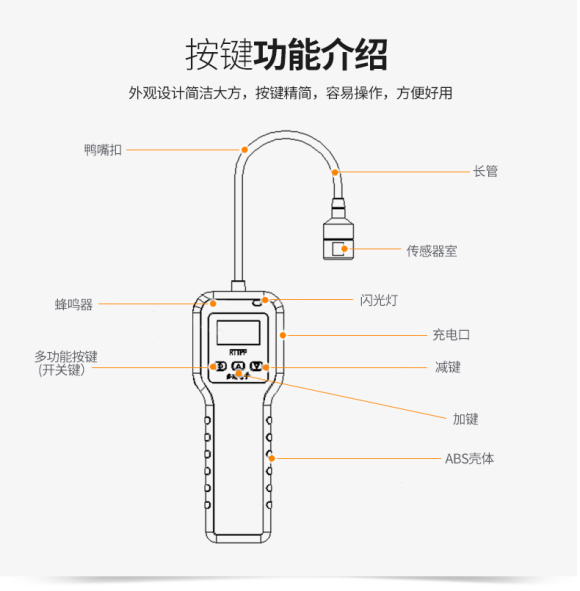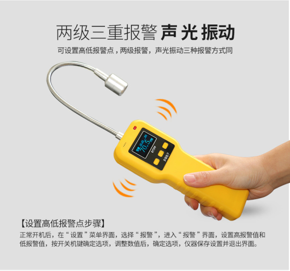 DR-750 gas detection alarm can detect combustible gas, with ARM low-power high-speed processor, and with sound, light, vibration three alarm functions, with a long tube probe, which is conducive to use in a variety of environments.