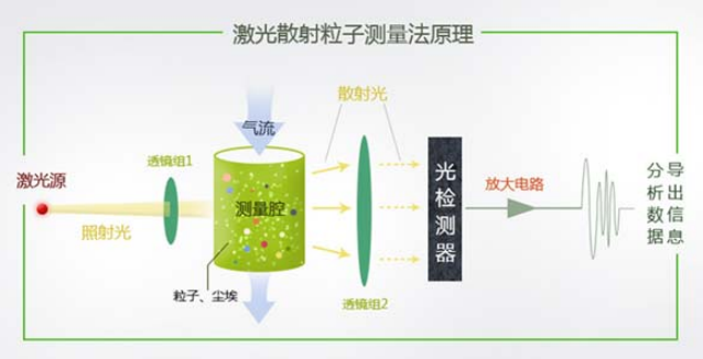 The laser beam is irradiated on the dusty gas stream, so that the beam produces scattered light, and the higher the dust concentration, the greater the scattered light intensity, so that the dust concentration is measured. The light scattering method determines the concentration of inhalable particulate matter in the air in public places, which has the advantages of rapidity, sensitivity, good stability, small size, light weight, no noise, easy operation, safety and reliability. On the one hand, the method requires a small amount of sample due to its high sensitivity, and can eliminate or simplify sample handling steps, so that sampling and analysis times can be greatly reduced, and on the other hand, the method does not require sample storage, thus avoiding or reducing all possible error factors in the analytical method.