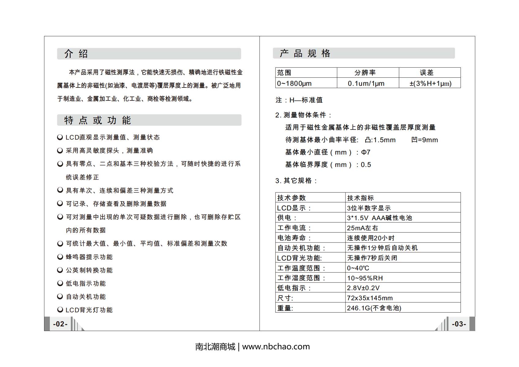 HUINUO BP-1500FN paints Thickness Gauge, 1500μm thickness measurement integrated dual-use standard typeMagnetic Induction + eddy Current0~1500μm±2%¥880.0SE -