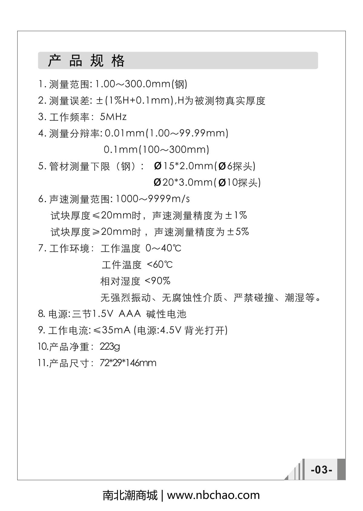 Steel plate Ultrasonic Thickness Gauge DC-3000C, penetration coating measurement material Film thicknessT~E:0.65~400mm;E~E:3.0~25mm5MHzSplit probe (D5301), dual crystal¥7920.0SE -
