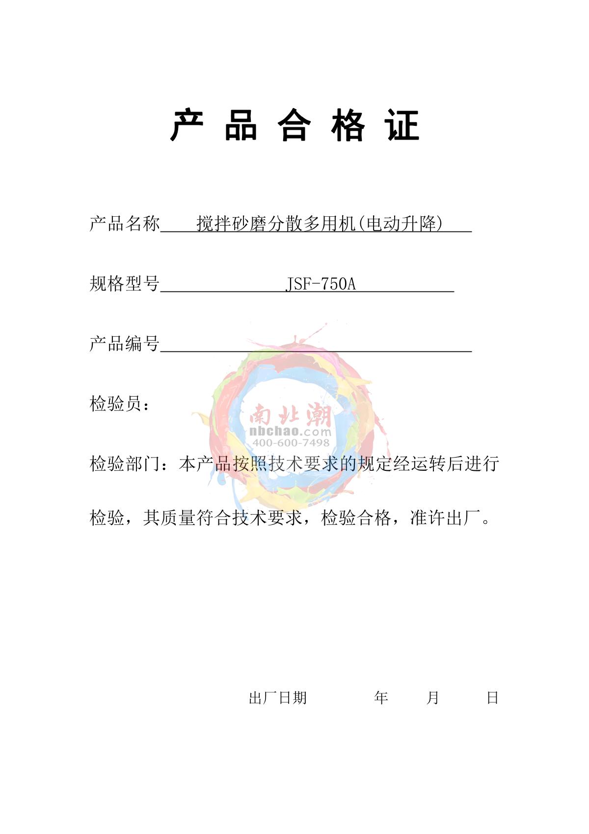 Pushen JSF-750A Mixing matte dispersion multi-purpose machine Manual,OI